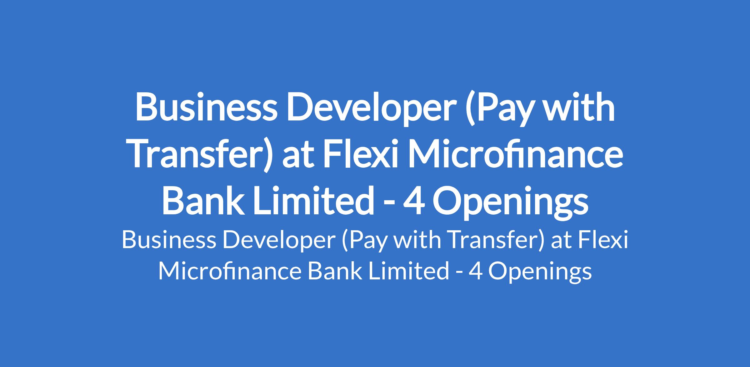 Flexi Microfinance Bank Limited is recruiting to fill the position of: Business Developer (Pay with Transfer). The position is located in Ikeja - Lagos, Ibadan - Oyo, Port Harcourt - Rivers and Cross River States. Salary: N70,000 monthly. Interested candidates should possess relevant qualifications.
