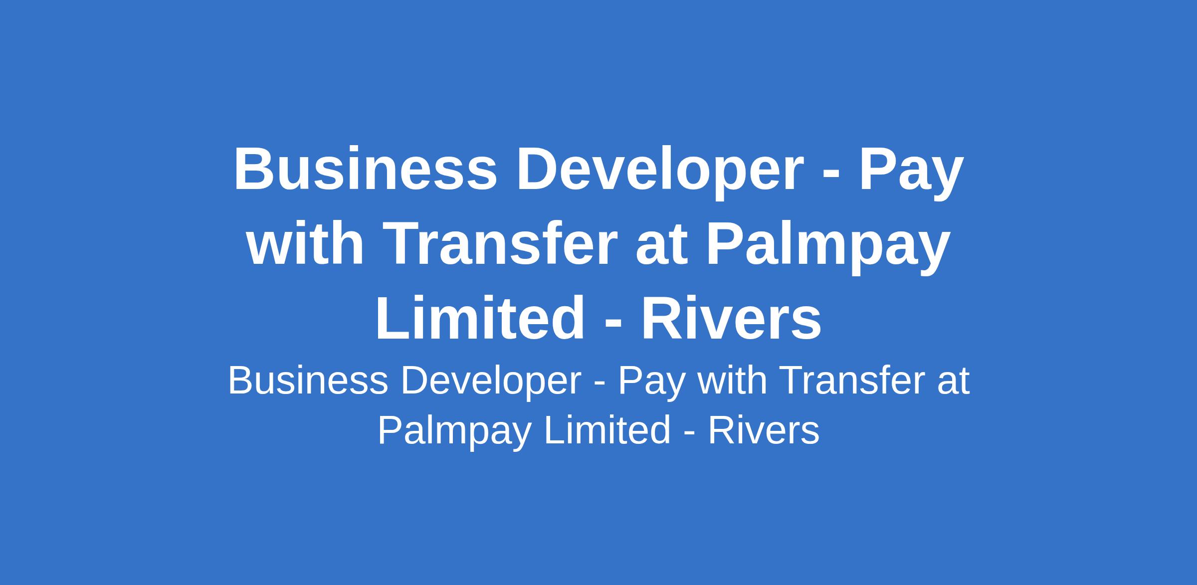 Business Developer - Pay with Transfer at Palmpay Limited - Rivers