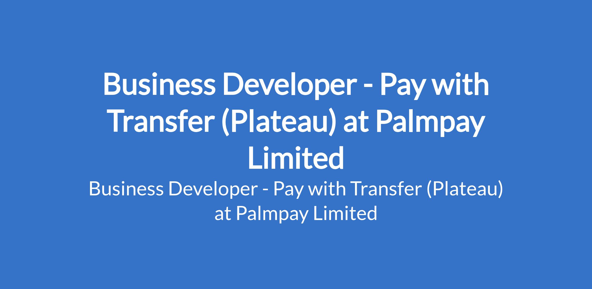 Business Developer - Pay with Transfer (Plateau) at Palmpay Limited