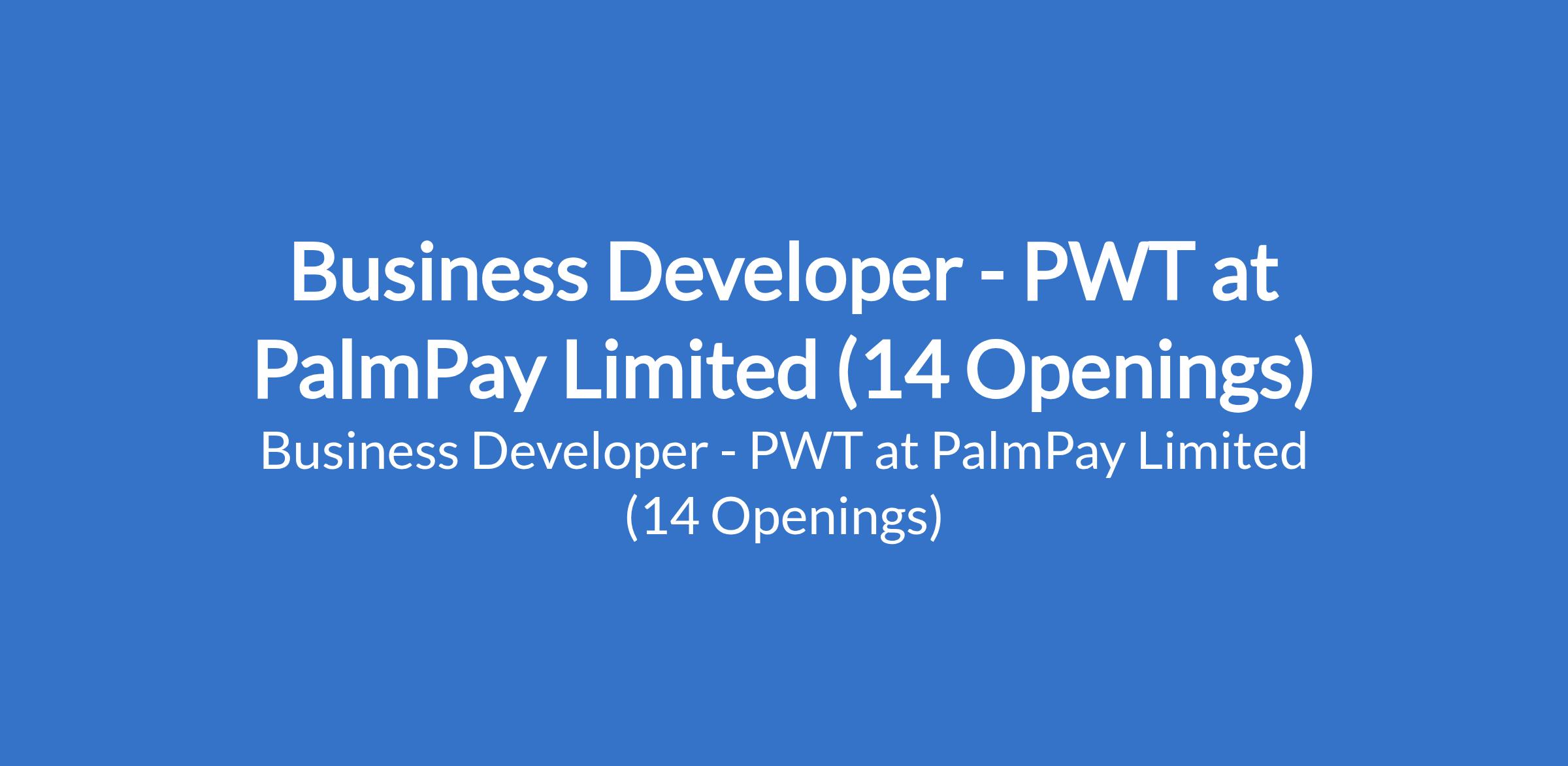 PalmPay Limited is recruiting to fill the position of: Business Developer - PWT. The position is located in Ipokia, Apata, Ido, & Mokola - Oyo; Iwo - Osun, Yewa South, Ijebu East, Remo North, Odogbolu, Ado & Egba North - Ogun; Ketu, Ojota, and Mile 12 - Lagos States. Salary: N70,000 monthly. Interested candidates should possess minimum of an SSCE / OND qualification with previous experience in sales/customer-facing roles.