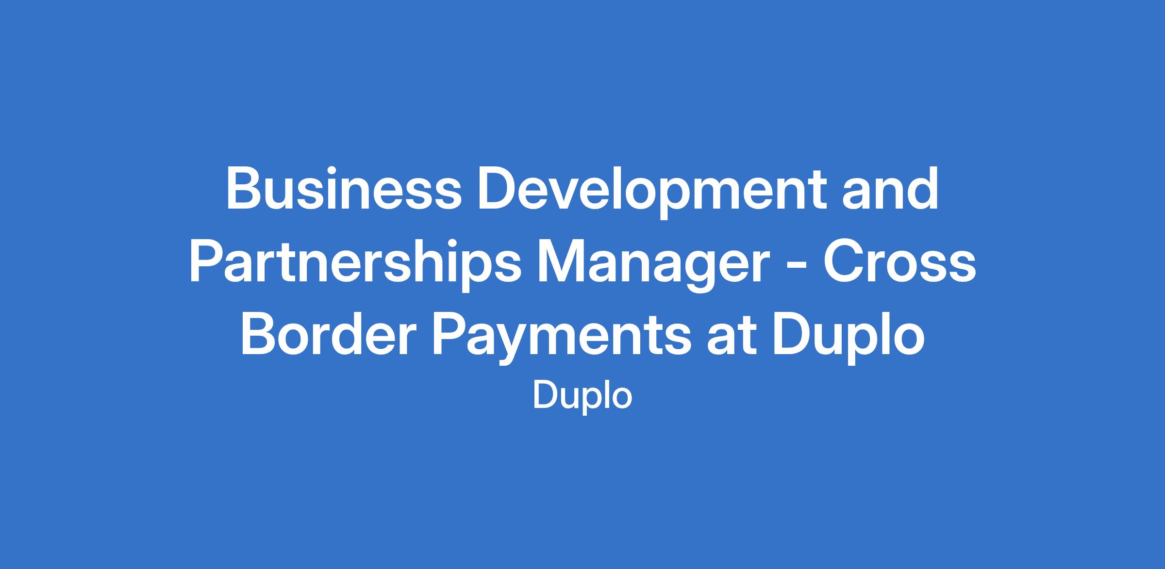 Business Development and Partnerships Manager - Cross Border Payments at Duplo