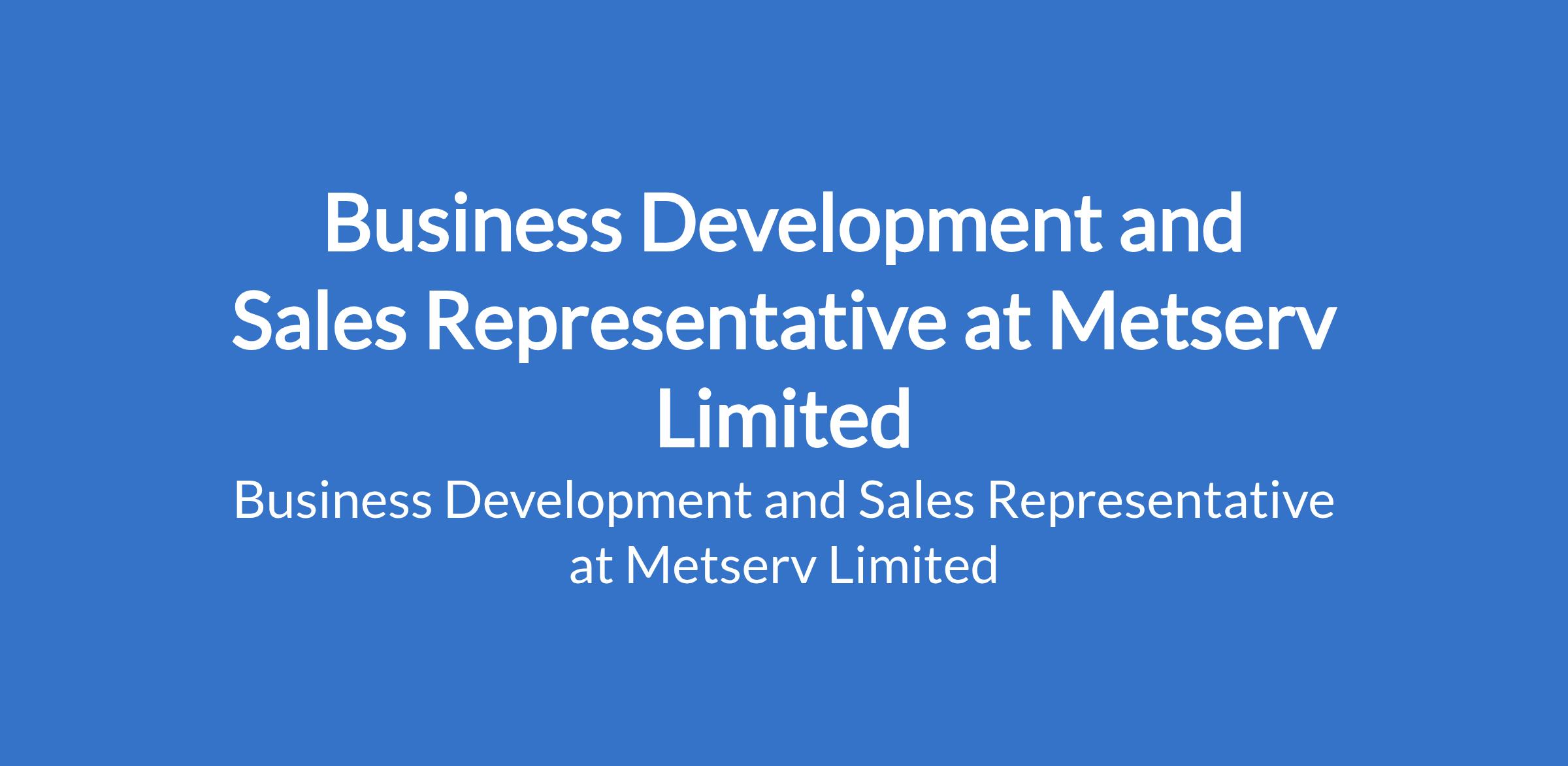 Metserv Limited is recruiting to fill the position of: Business Development and Sales Representative. Interested candidates should possess a Bachelors Degree in Business Administration, Marketing, or a related field with 3-5 years of proven experience in sales, business development, or a similar role.