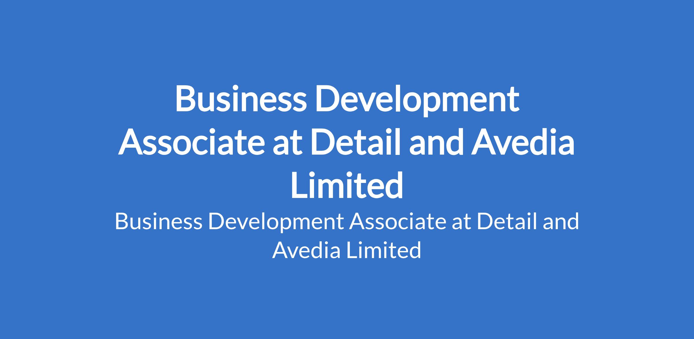 Detail and Avedia Limited is recruiting to fill the position of: Business Development Associate. The position is located in Jibowu / Yaba, Lagos State. Salary: N300,000 - N500,000 / month. Interested candidates should possess a Bachelors Degree in Business, Marketing, or a related field with 4+ years of experience in business development, sales, or client acquisition.