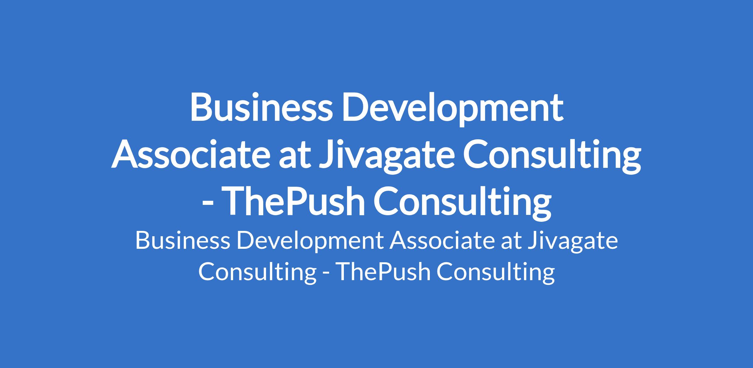 ThePush Consulting - Our client, Jivagate Consulting is recruiting to fill the position of: Business Development Associate. The position is located in Lekki Phase 1, Lagos State. Interested candidates should possess a Bachelor's Degree with 2 4 years experience in Business Development or Sales (professional services/consulting).
