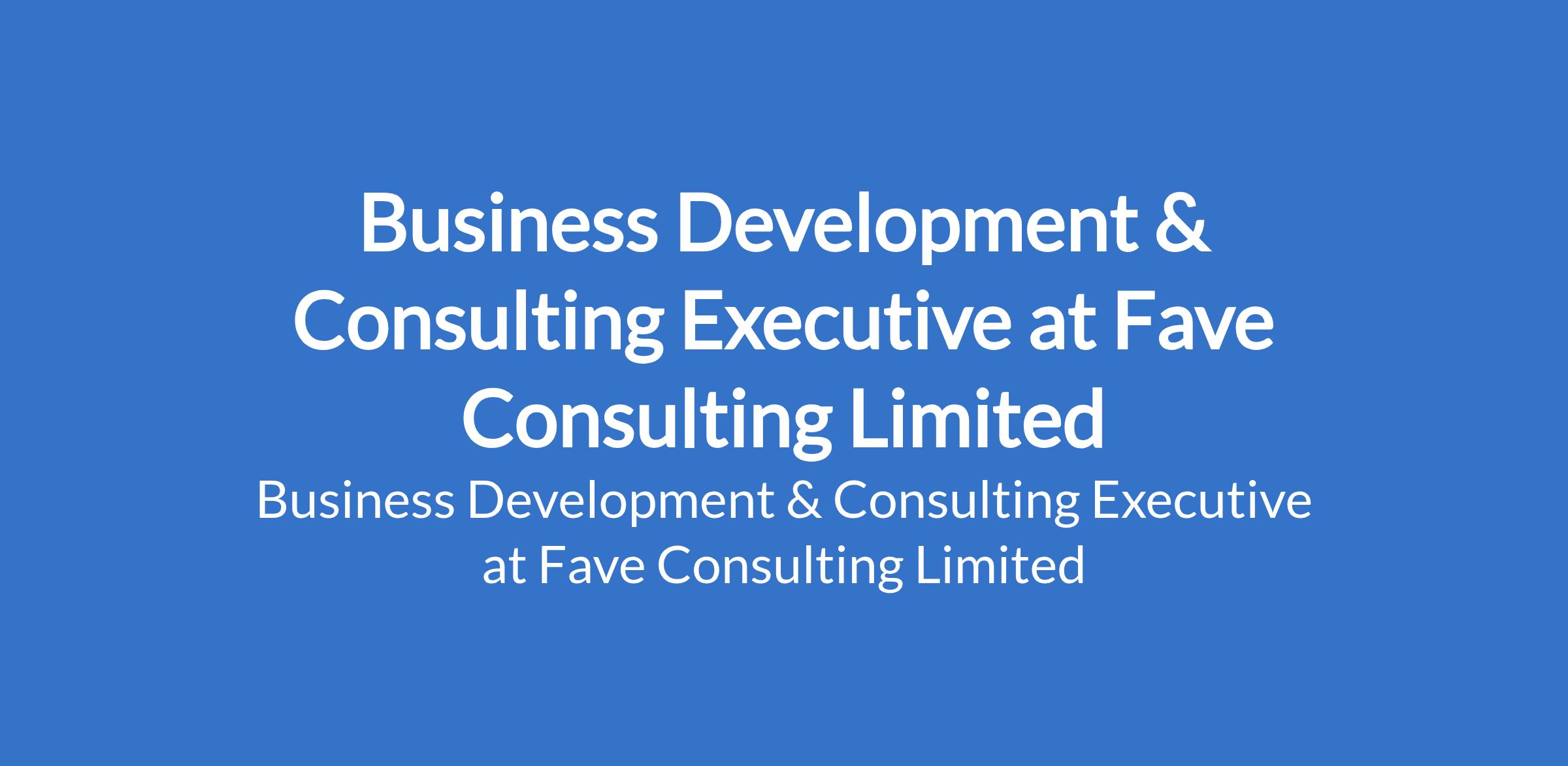 Fave Consulting Limited is recruiting to fill the position of: Business Development & Consulting Executive. The position is located in Lagos State. Salary: N100,000 - N300,000 monthly. Interested candidates should possess a Bachelors Degree in Business Administration, Management, Accounting, or related field with 24 years experience in business development, consulting, or client management.