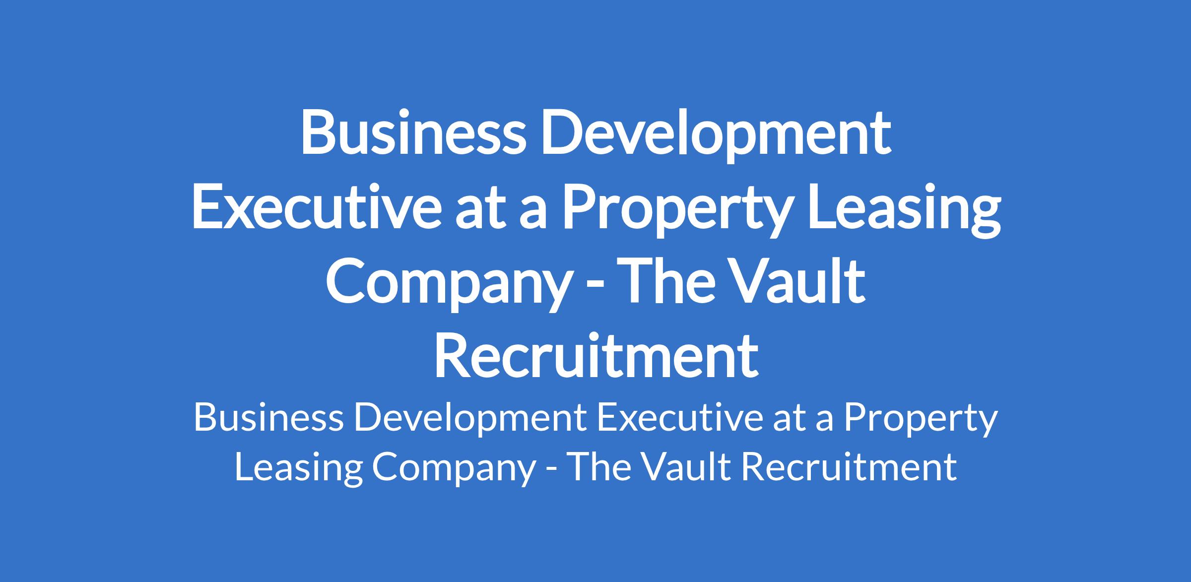 The Vault Recruitment - Our client, a Property Leasing Company is recruiting to fill the position of: Business Development Executive. Salary: 200,000 Monthly.The position is located in Lagos State. Interested candidates should possess a B.Sc / HND in Marketing, Estate Management, Business Administration, or related field with 24 years experience in Sales, Leasing, or Business Development.