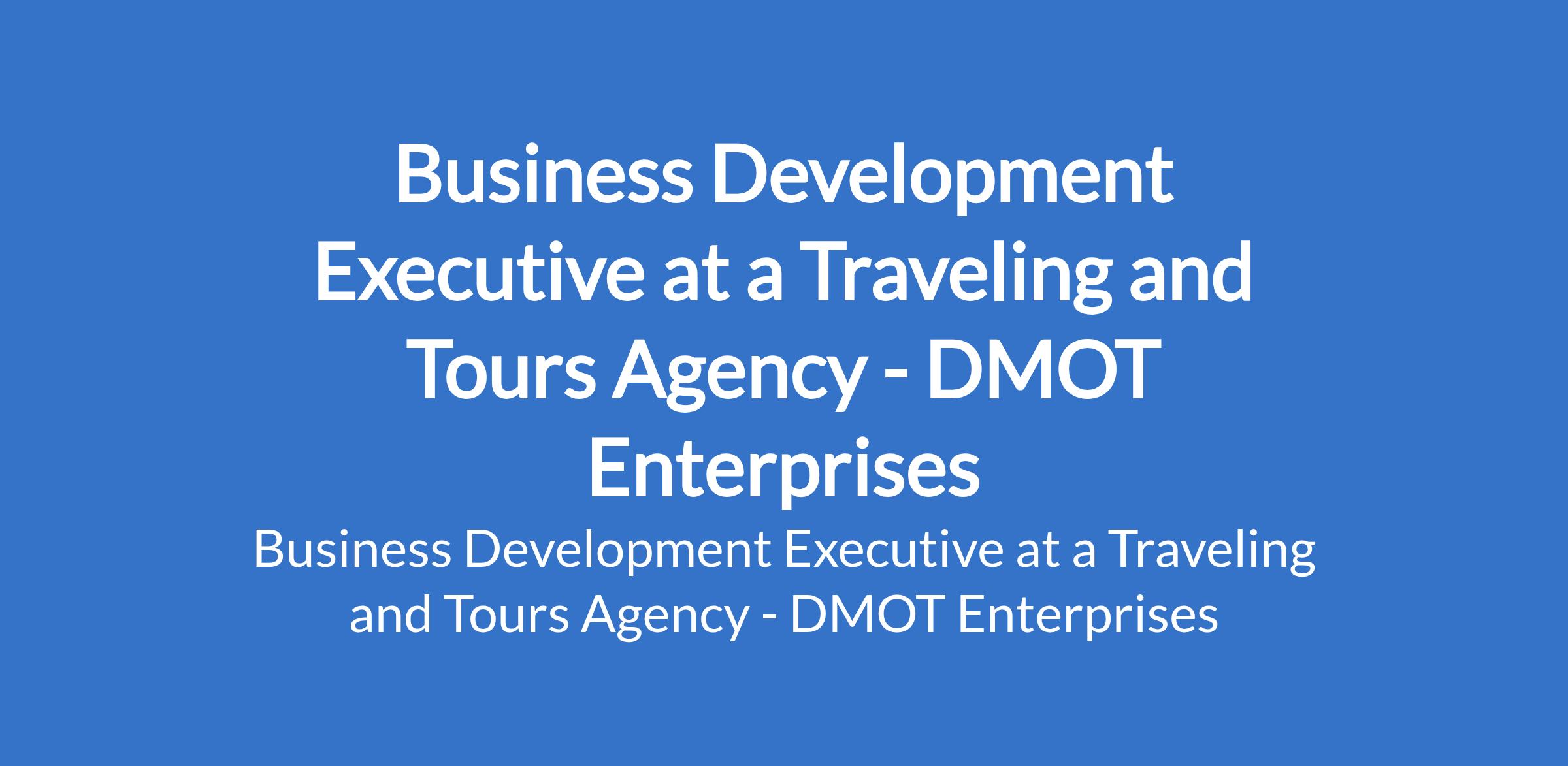 DMOT Enterprises - Our client, a Traveling and Tours Agency is recruiting to fill the position of: Business Development Executive. The position is located in Ikeja, Lagos State. Interested candidates should possess a BSc/HND in the Arts or Social Sciences field with 2 to 4 years of experience in a Traveling and Tours company or a Ticketing Agency.