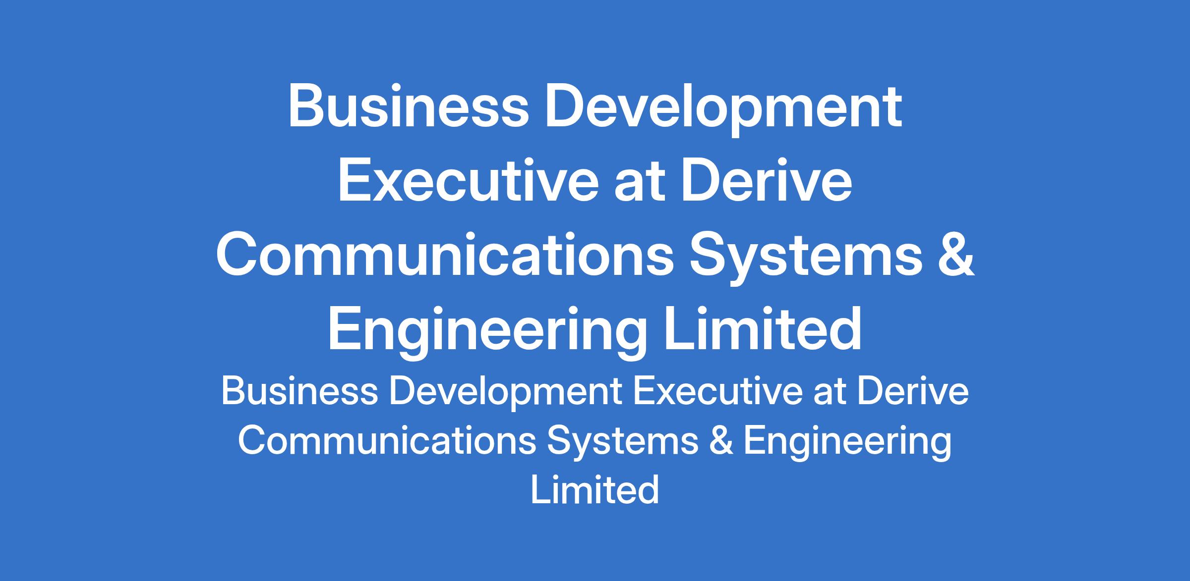 Derive Communications Systems & Engineering Limited is recruiting to fill the position of: Business Development Executive. The position is located in Lugbe, Abuja (FCT). Interested candidates should possess a Bachelors Degree in Business, Marketing, Engineering, or related field with proven experience in sales and business development, preferably in engineering, technical industries, oil & gas will be an added advantage.