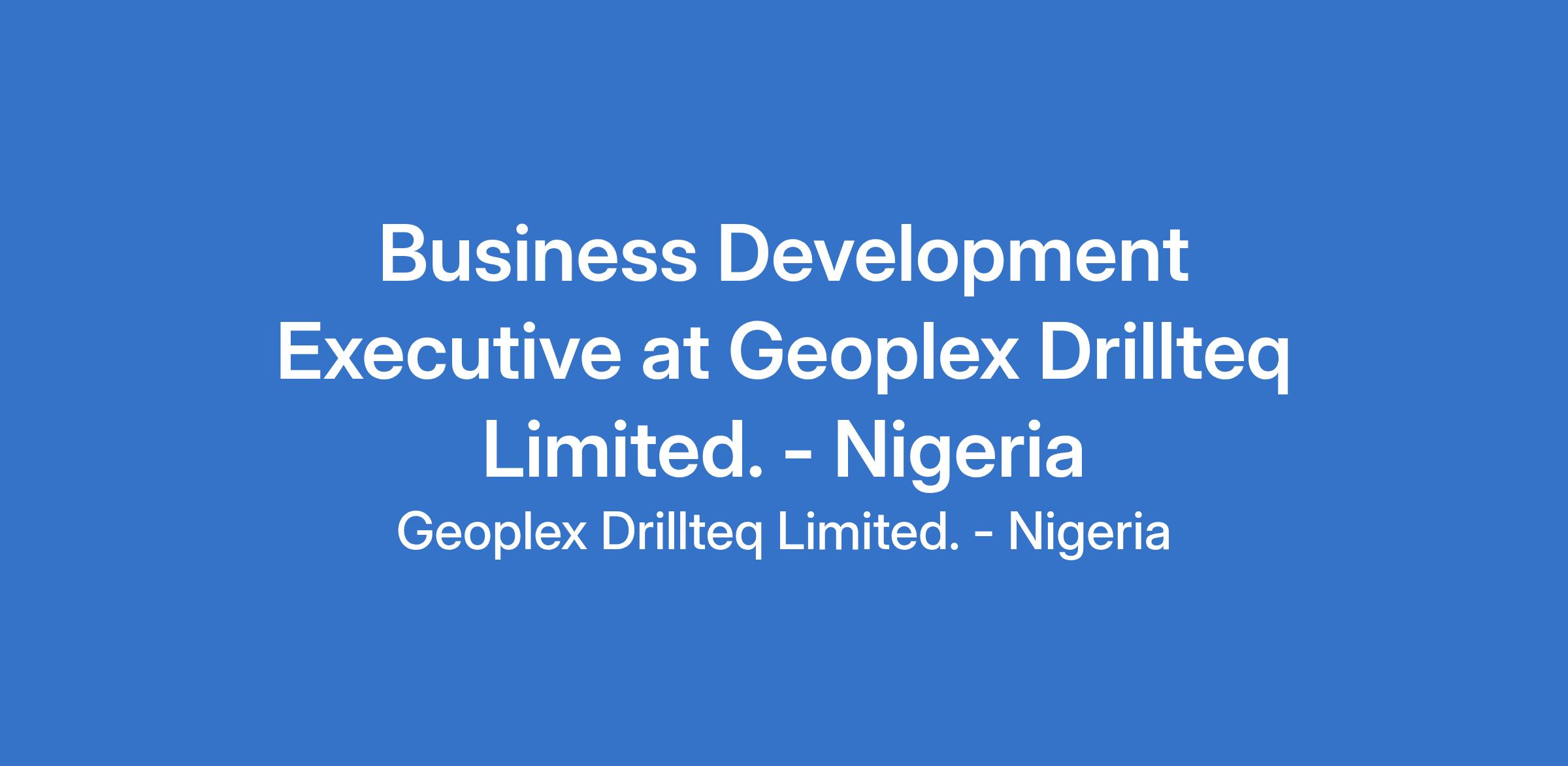 Business Development Executive at Geoplex Drillteq Limited. - Nigeria