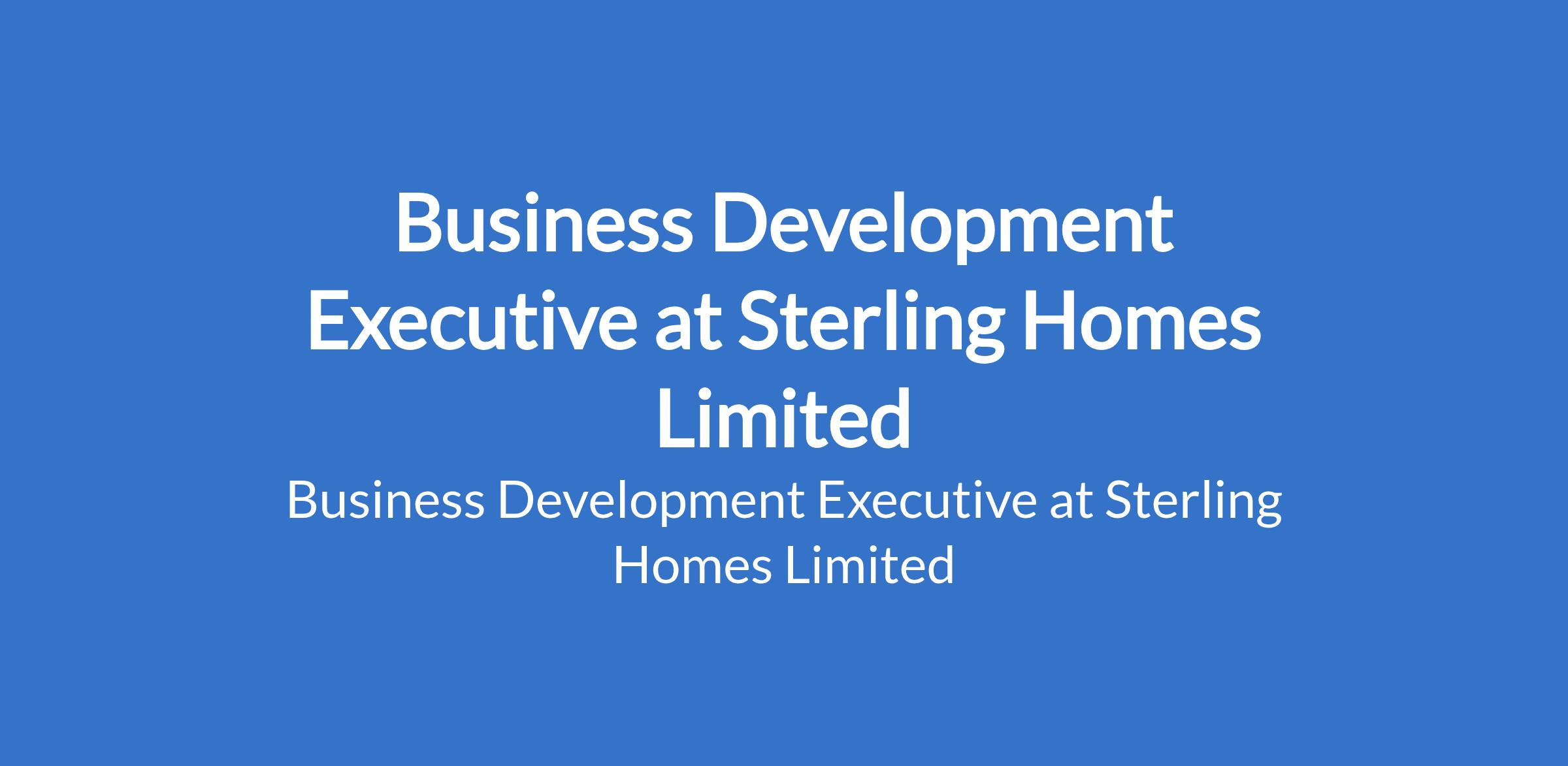 Sterling Homes Limited is recruiting to fill the position of: Business Development Executive. The position is located in Ojodu Berger, Lagos State. Salary: N100,000 - N120,000 monthly. Interested candidates should possess a B.Sc / HND qualification in any field (Sales/Marketing background is an advantage).