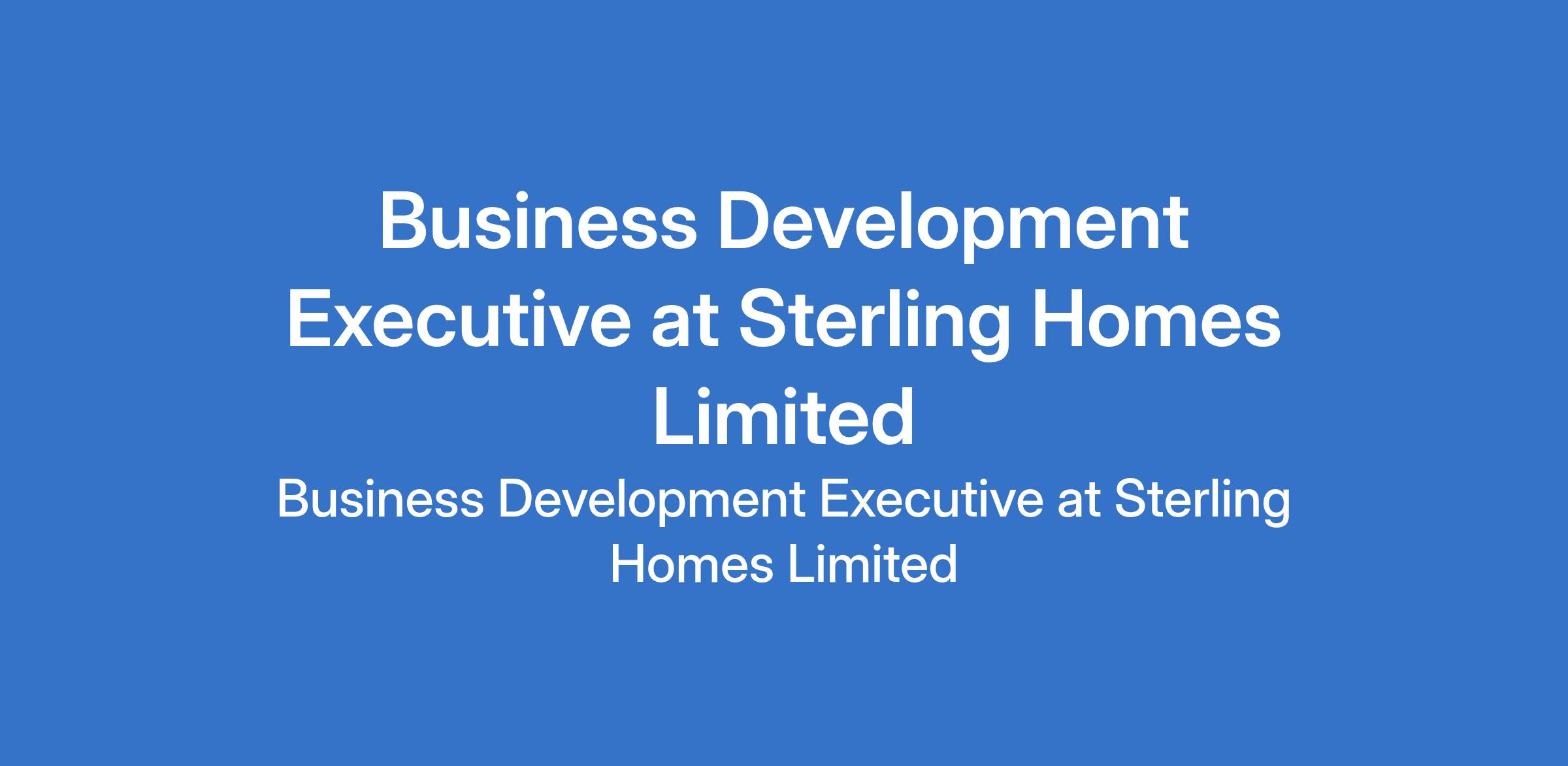 Sterling Homes Limited is recruiting to fill the position of: Business Development Executive. The position is located in Ojodu Berger, Lagos State. Salary: N100,00 - N120,000 monthly. Interested candidates should possess a BSc / HND qualification in any field (Sales/Marketing background is an advantage).