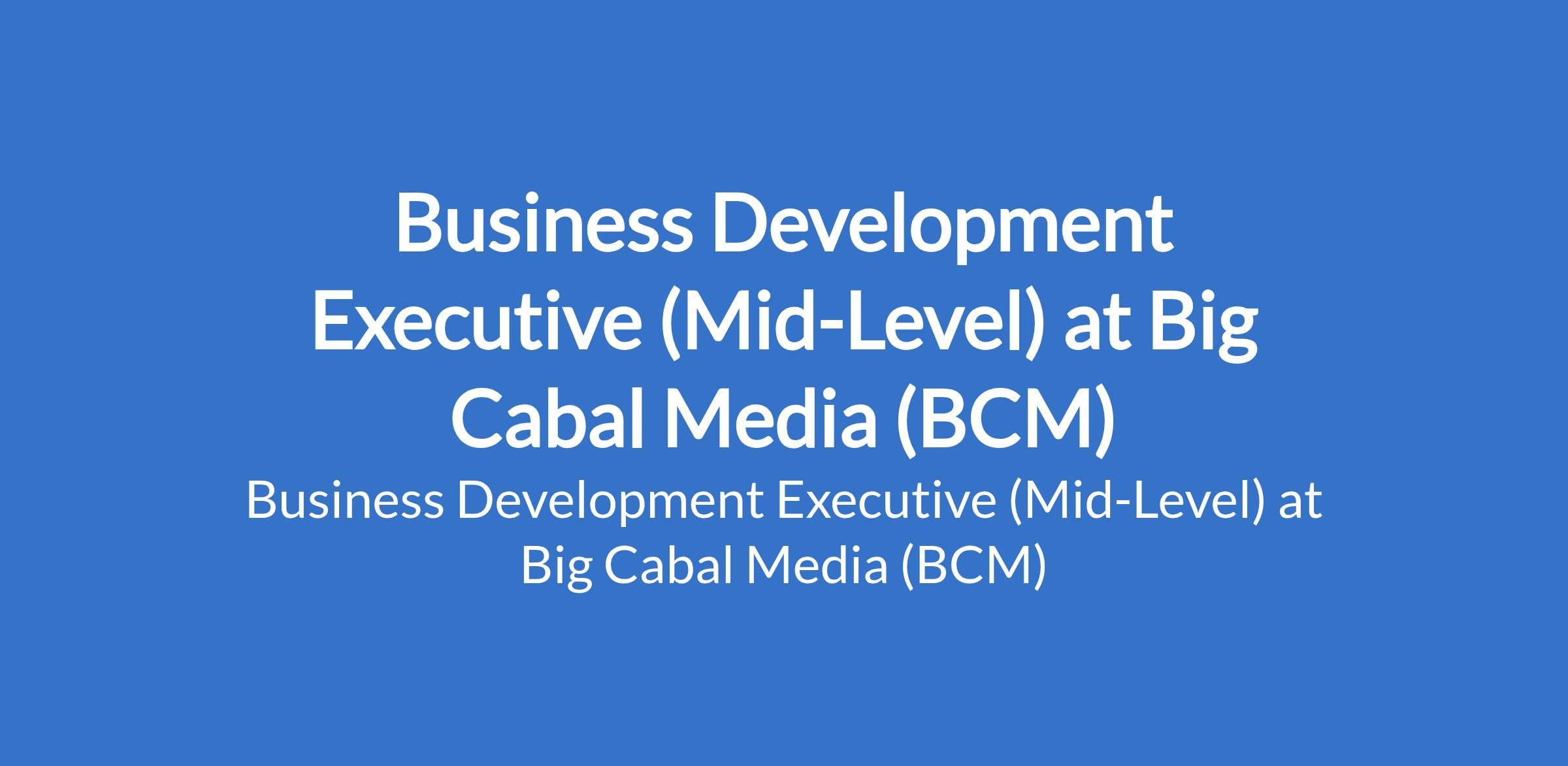 Business Development Executive (Mid-Level) at Big Cabal Media (BCM)