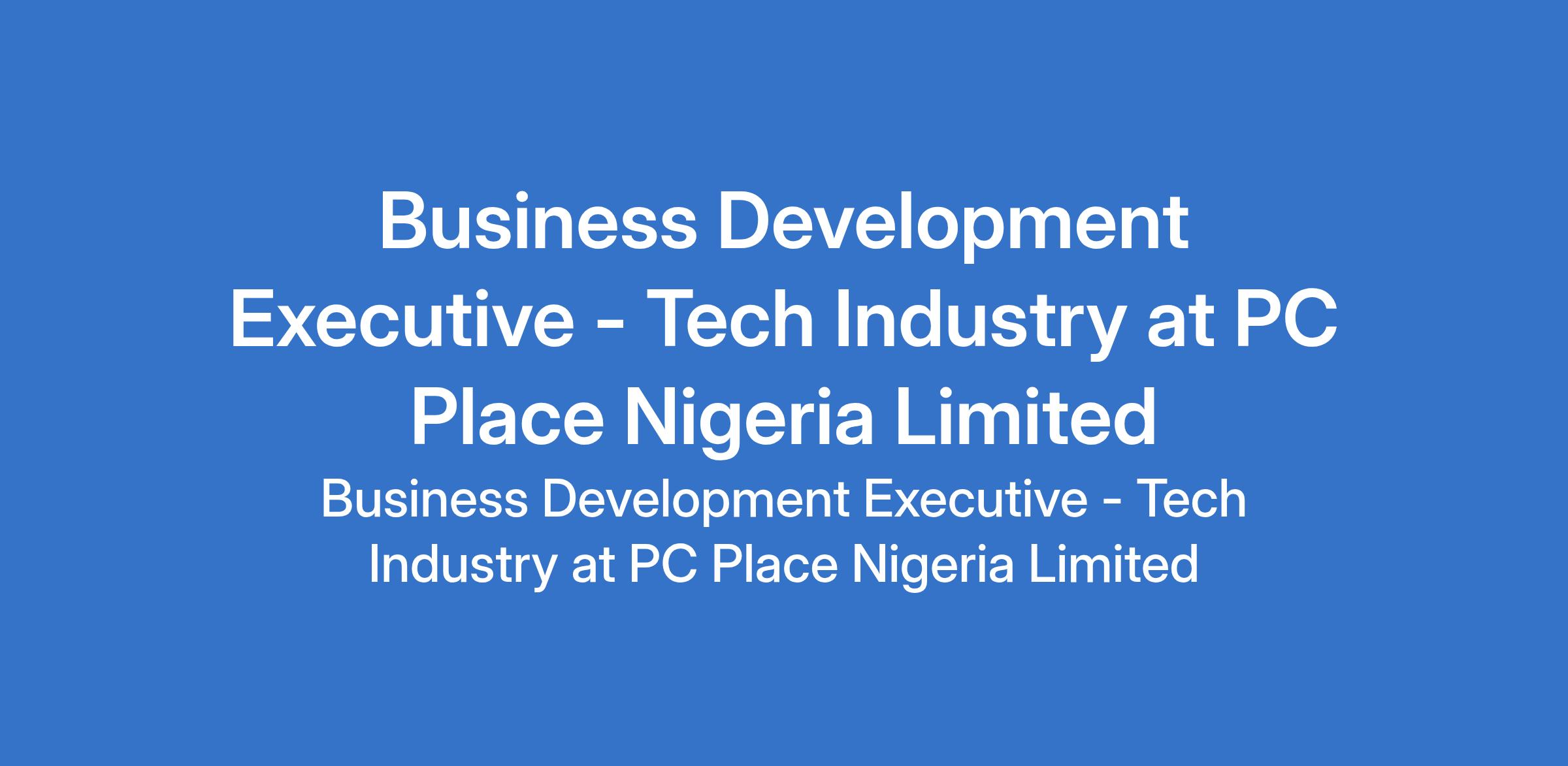 PC Place Nigeria Limited is recruiting to fill the position of: Business Development Executive - Tech Industry. The position is located in Ikeja, Lagos State. Interested candidates should possess a Bachelor's Degree in Business Administration, Marketing, Computer Science, Information Technology, or related field with 35 years of proven experience in business development, sales, or account management within the IT/computer industry.