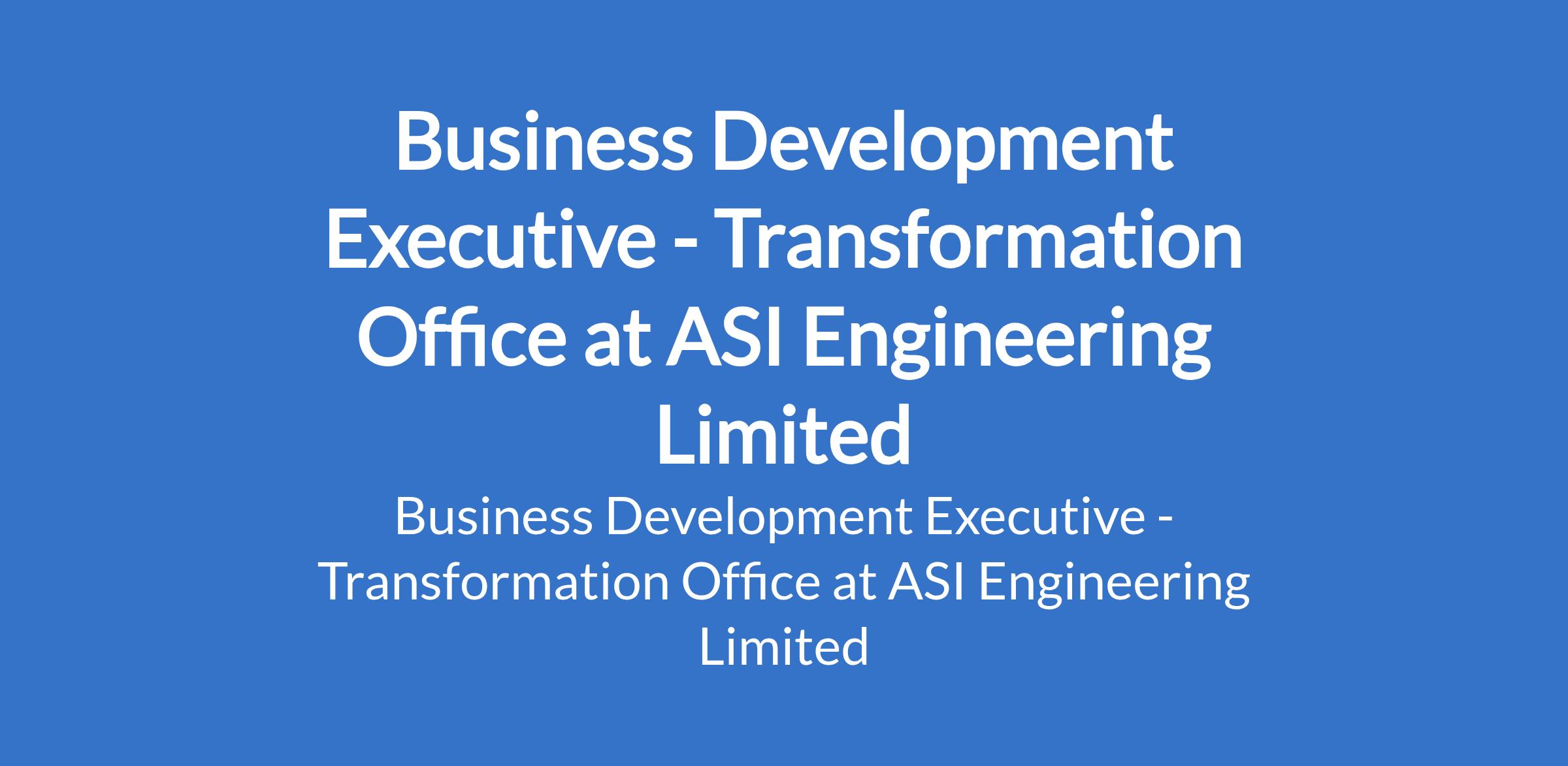 ASI Engineering Limited is recruiting to fill the position of: Business Development Executive - Transformation Office. The position is located in Abuja (FCT). Interested candidates should possess a Bachelors Degree in Marketing, Engineering, Economics, Business Administration, or related fields with 10 - 15 years of business development experience.