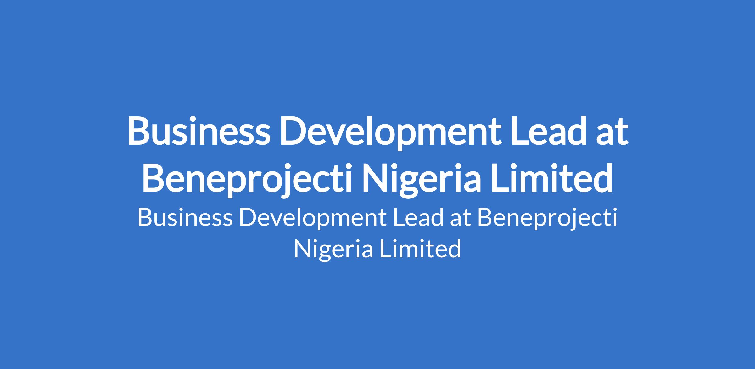 Beneprojecti Nigeria Limited is recruiting to fill the position of: Business Development Lead. The position is located in Lagos State. Interested candidates should possess at least a Second Class Degree in Engineering or any Science-related courses with a minimum of 4 years of working experience in a similar position with prior experience in Marine, Energy, Oil and Gas in the Onshore and Offshore industry.