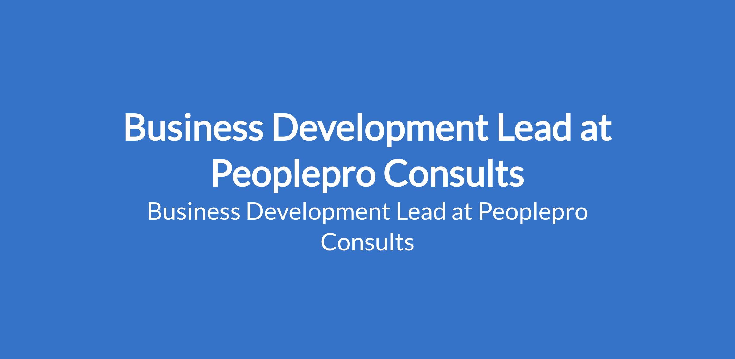 Peoplepro Consults is recruiting to fill the position of: Business Development Lead. The position is located in Lagos State. Interested candidates should possess a Degree in Business, Finance or related fields with 4+ years experience in business development within financial services.