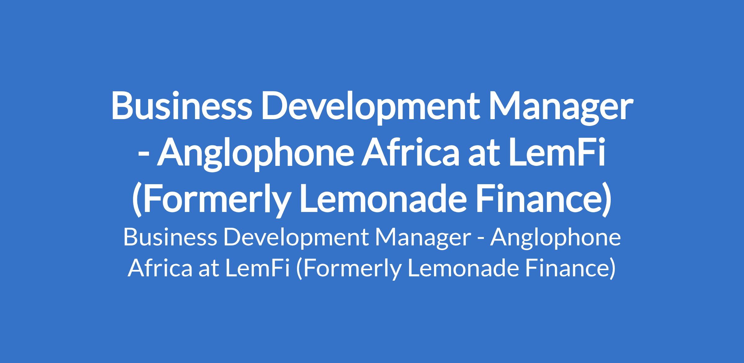 LemFi (Formerly Lemonade Finance) is recruiting to fill the position of: Business Development Manager - Anglophone Africa. The position is located in Lagos State. Interested candidates candidates should possess relevant qualifications with 5+ years of experience in Business Development, Partnerships, or Commercial roles.