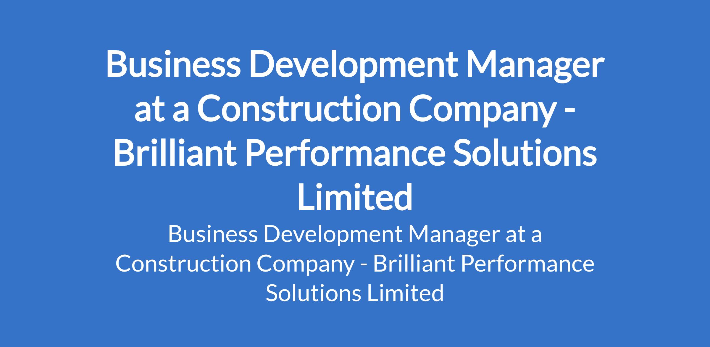 Brilliant Performance Solutions Limited - Our client, a Construction company, is recruiting to fill the position of: Business Development Manager. The position is located in Kobape, Ogun State. Interested candidates should possess a Bachelors Degree in related Engineering discipline or other relevant discipline with 8 - 10 years experience in Operations or Sales functions in a reputable organizations with at least 4 years in senior level managerial role.