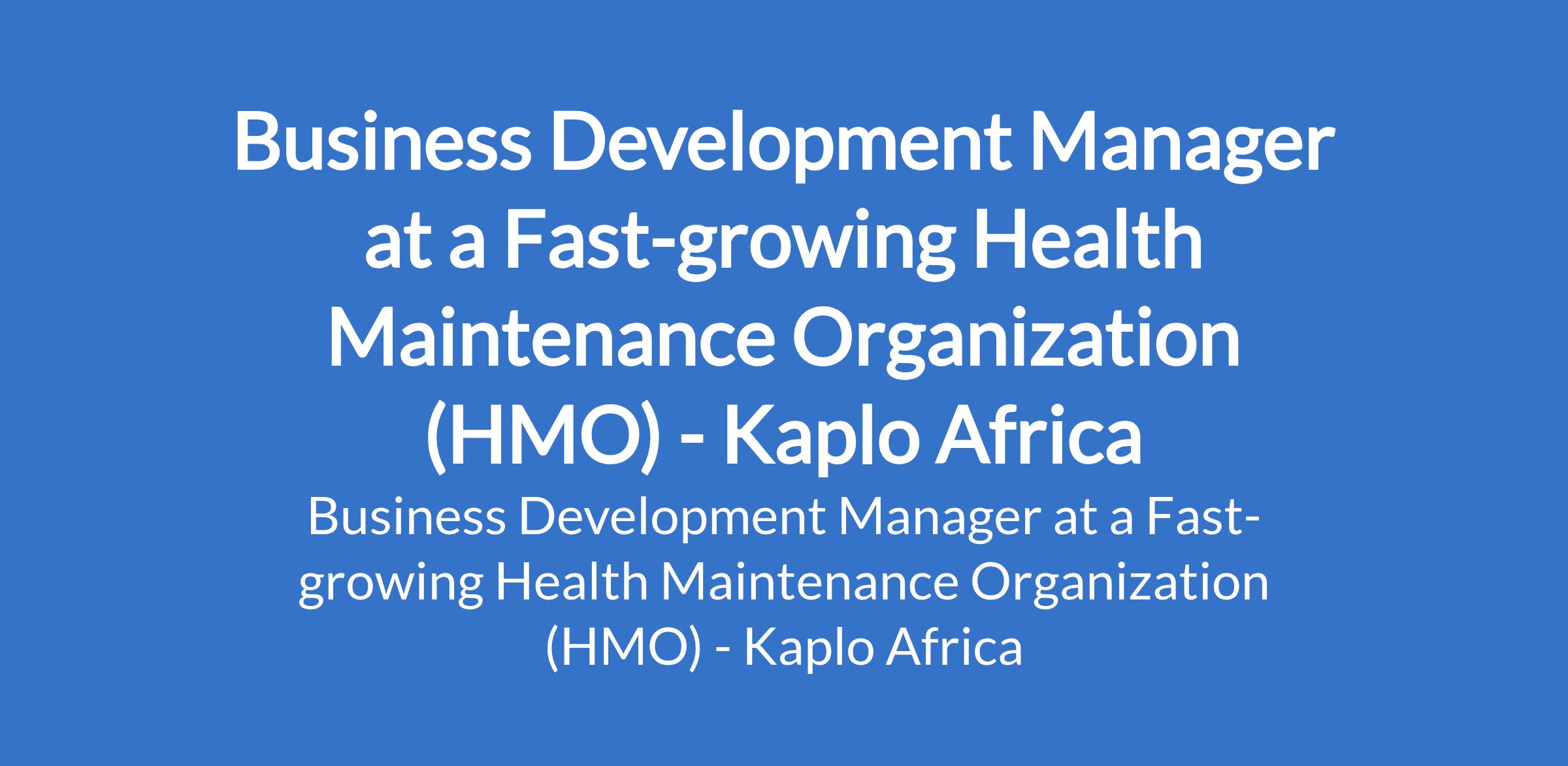 Kaplo Africa - Our client, a Fast-growing Health Maintenance Organization (HMO) is recruiting to fill the position of: Business Development Manager. The position is located in Ibadan, Oyo State. Salary: N400,000 / month. Interested candidates should possess a Bachelors Degree in Business Administration, Marketing, Economics, or related fields (Masters degree is an added edge) with 5 7 years proven experience in business development, sales, or marketing within an HMO or health insurance organization.