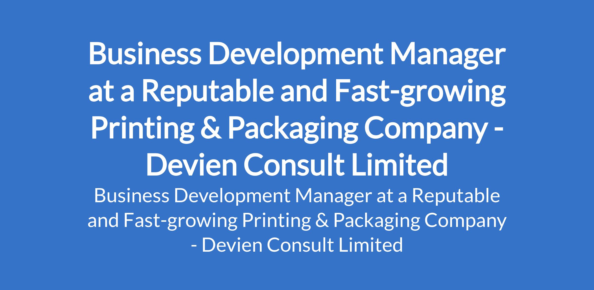 Devien Consult Limited - Our client, a Reputable and Fast-growing Printing & Packaging Company is recruiting to fill the position of: Business Development Manager. The position is located in Onipanu, Lagos State. Interested candidates should possess a Bachelors Degree in Marketing, Business, or related field with a minimum of 3 years experience in B2B sales or business development.