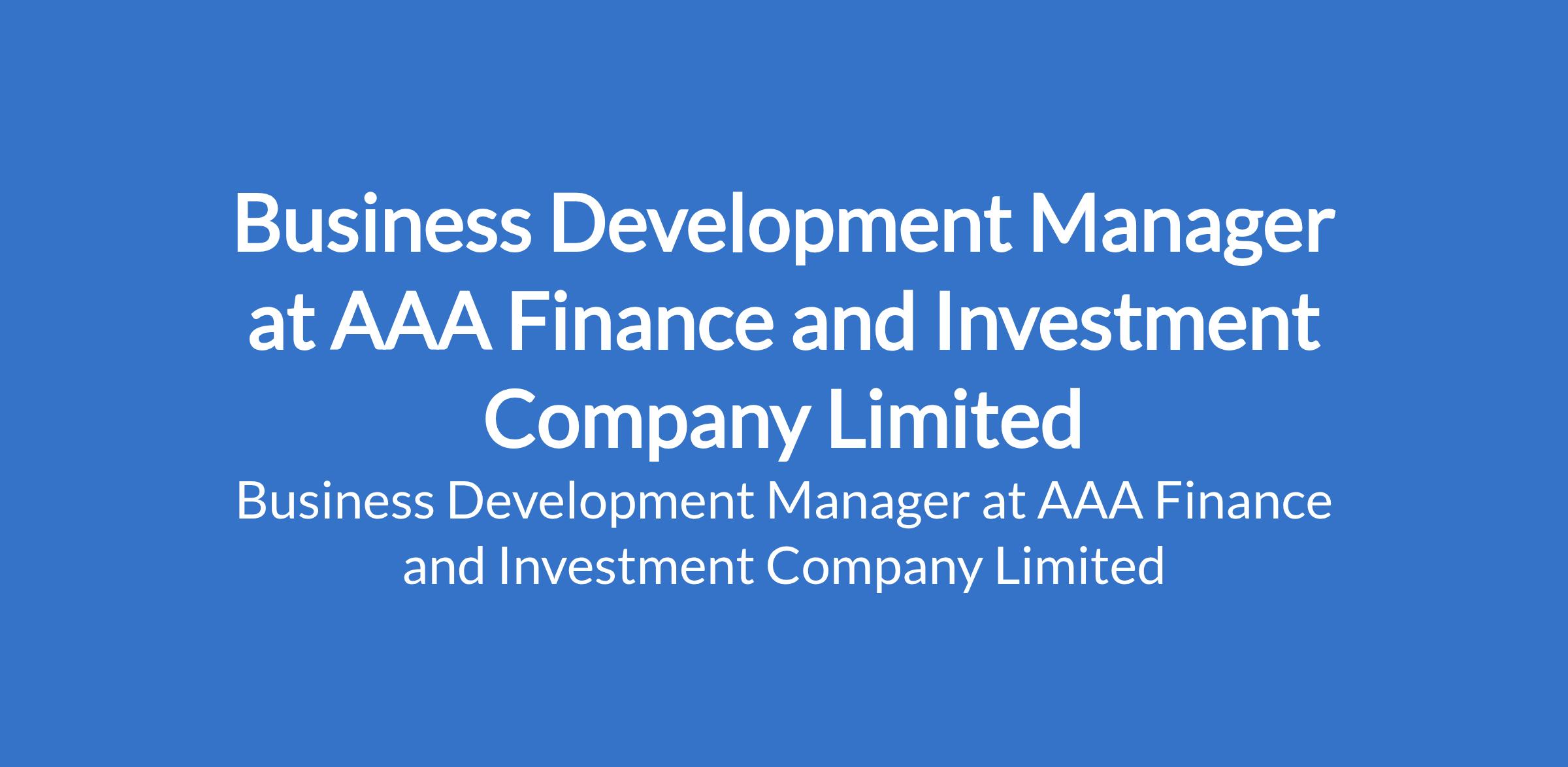 AAA Finance and Investment Company Limited is recruiting to fill the position of: Business Development Manager. The position is located in Victoria Island, Lagos State. Interested candidates should possess a Bachelors Degree in Business Administration, Finance, Marketing, Economics, or a related field with 58 years experience in business development or sales within financial services.