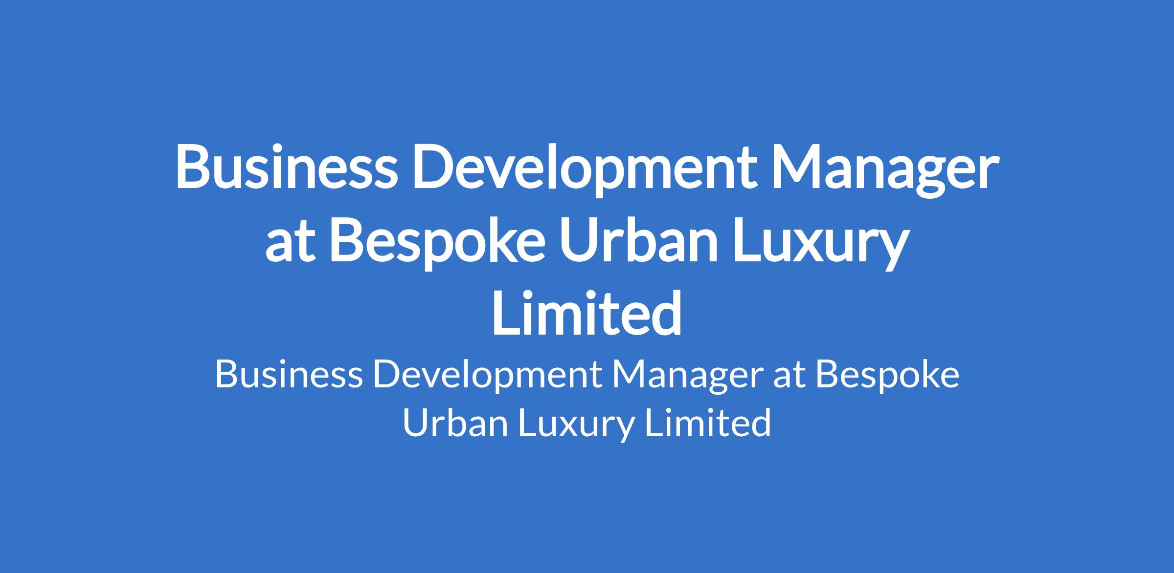 Bespoke Urban Luxury Limited is recruiting to fill the position of: Business Development Manager. The position is located in Maitama, Abuja (FCT). Salary: N250,000 - N350,000 per month. Interested candidates should possess relevant qualifications.