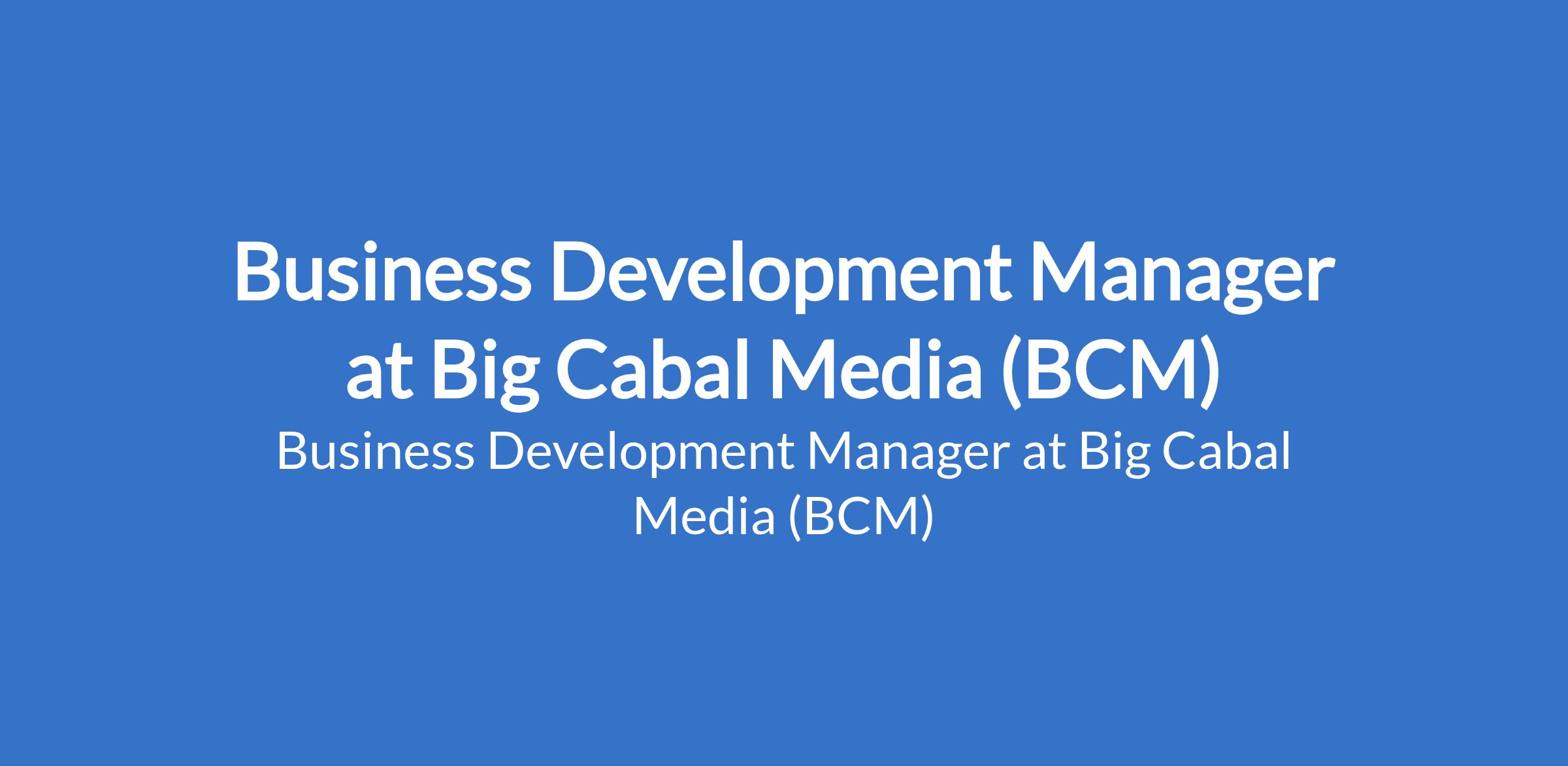 Business Development Manager at Big Cabal Media (BCM)