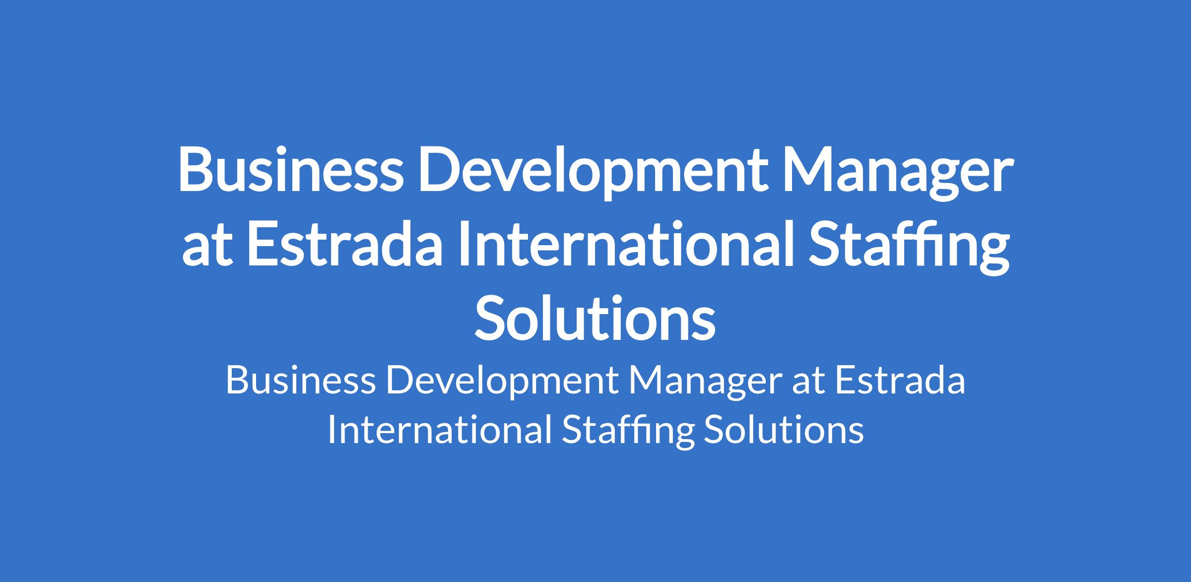Estrada International Staffing Solutions is recruiting to fill the position of: Business Development Manager. The position is located in Lagos State. Salary: N500,000 per month. Interested candidates should possess a Bachelor's Degree in Business Administration, Marketing, or a related field with 36 years of proven experience in business development or sales (preferably in events, hospitality, or entertainment).