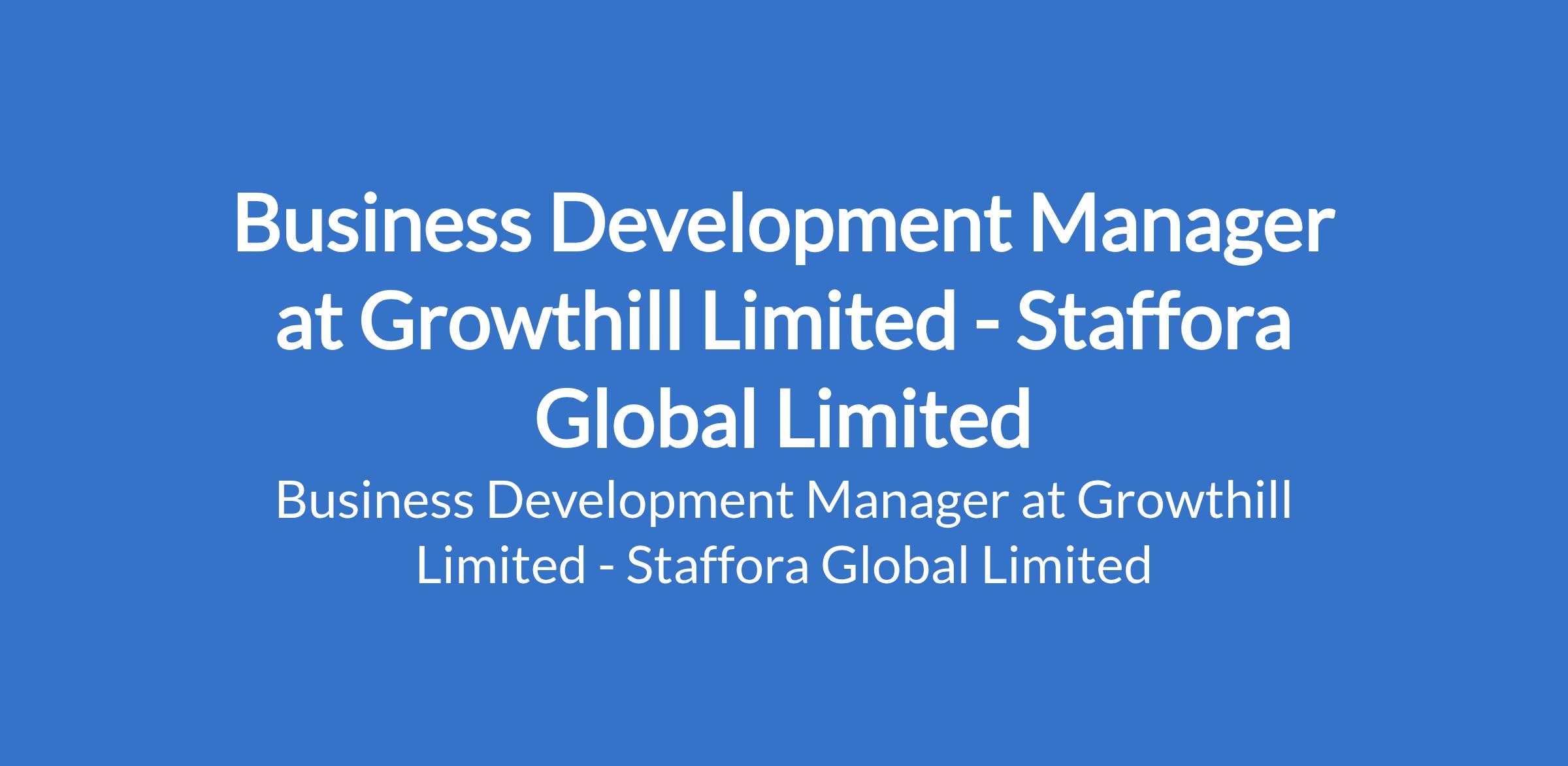 Staffora Global Limited - Our client, Growthill Limited is recruiting to fill the position of: Business Development Manager. The position is located in Kado, Abuja (FCT). Salary: N250,000 N300,000 monthly. Interested candidates should possess a Bachelor`s Degree with a minimum of 4 years experience in business development or sales within the real estate industry.