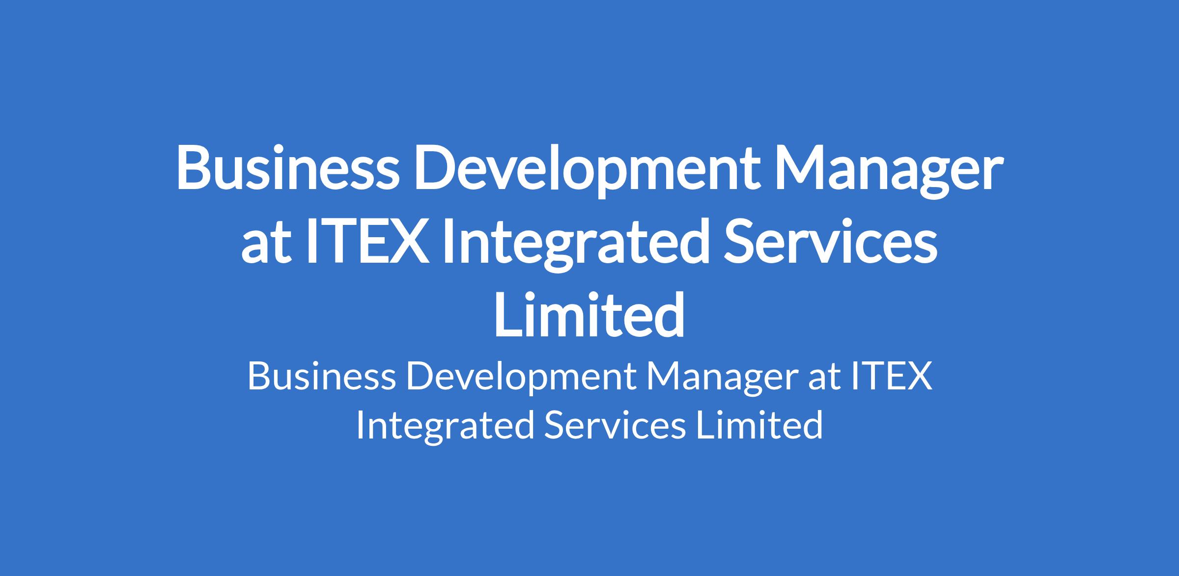 Business Development Manager at ITEX Integrated Services Limited