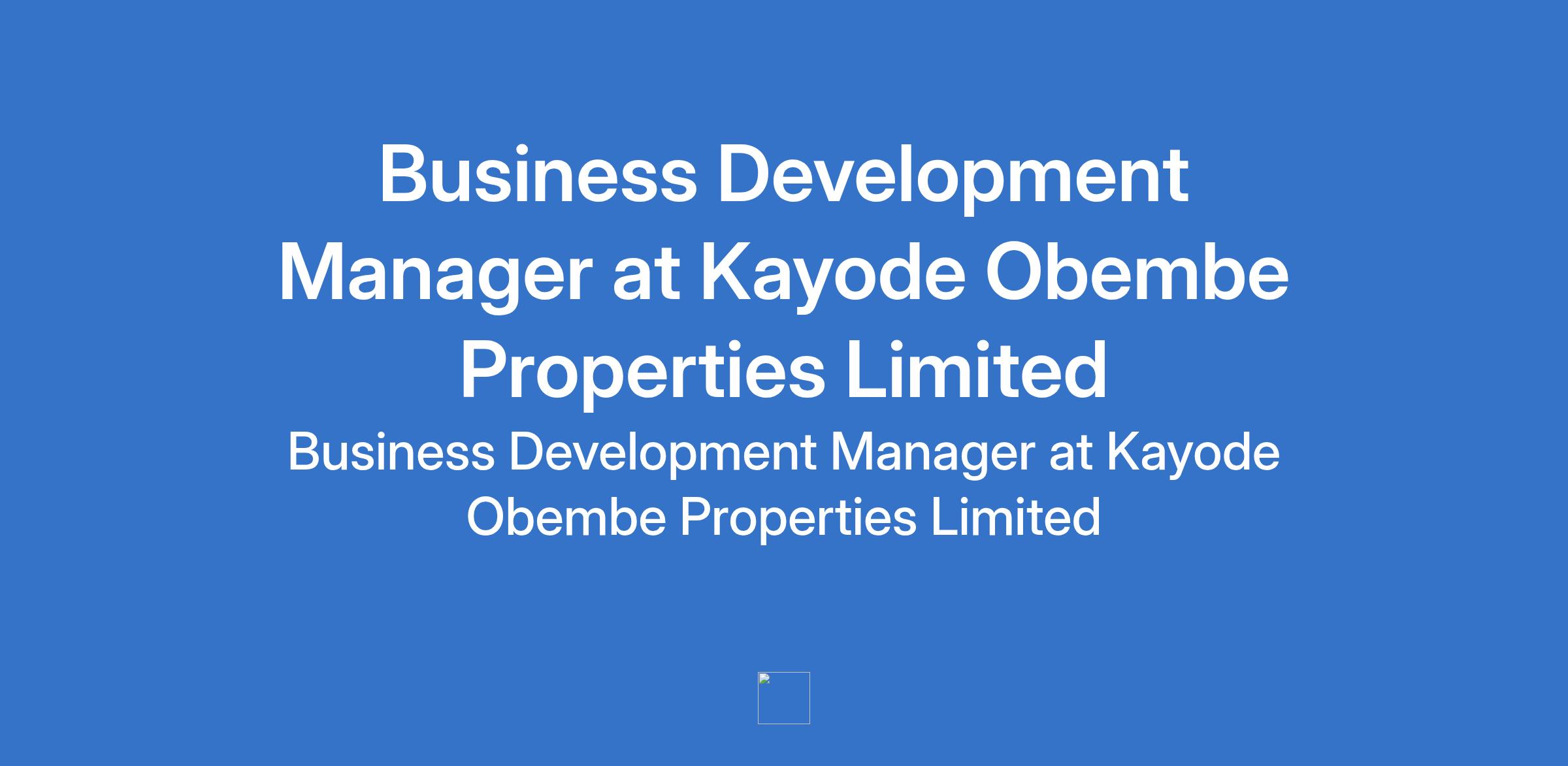 Kayode Obembe Properties Limited is recruiting to fill the position of: Business Development Manager. The position is located in Ajah/Chevron, Lagos State. Interested candidates should possess relevant qualifications and candidates should reside around Lekki and it's environs.