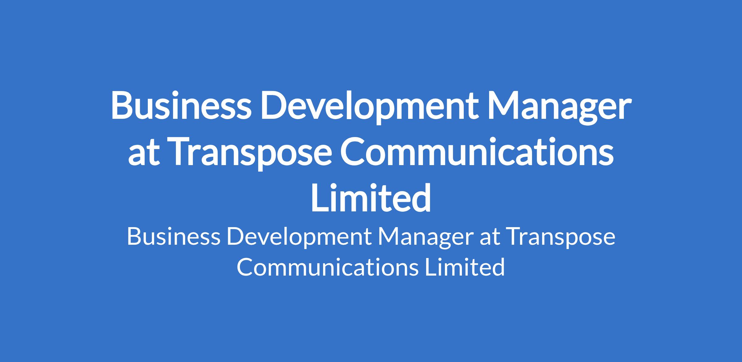 Transpose Communications Limited is recruiting to fill the position of: Business Development Manager. The position is located in Surulere, Lagos State. Salary: N350,000 - N400,000 / month. Interested candidates should possess a Bachelors Degree in Business Admin, Marketing, Communications etc; Masters Degree (e.g., MBA, MSc in Marketing/Communications) will be an advantage with 3 5 years of progressive experience in Business development, Media, advertising, or communications industries.