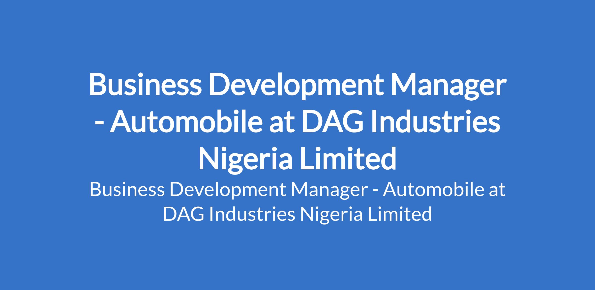 DAG Industries Nigeria Limited is recruiting to fill the position of: Business Development Manager - Automobile. The position is located in Asaba, Delta State. Salary: N300,000 - N450,000 / Month. Interested candidates should possess a Bachelors Degree in Business Administration, Marketing, Engineering, or a related field with 510 years of experience in business development or sales within the automobile industry.
