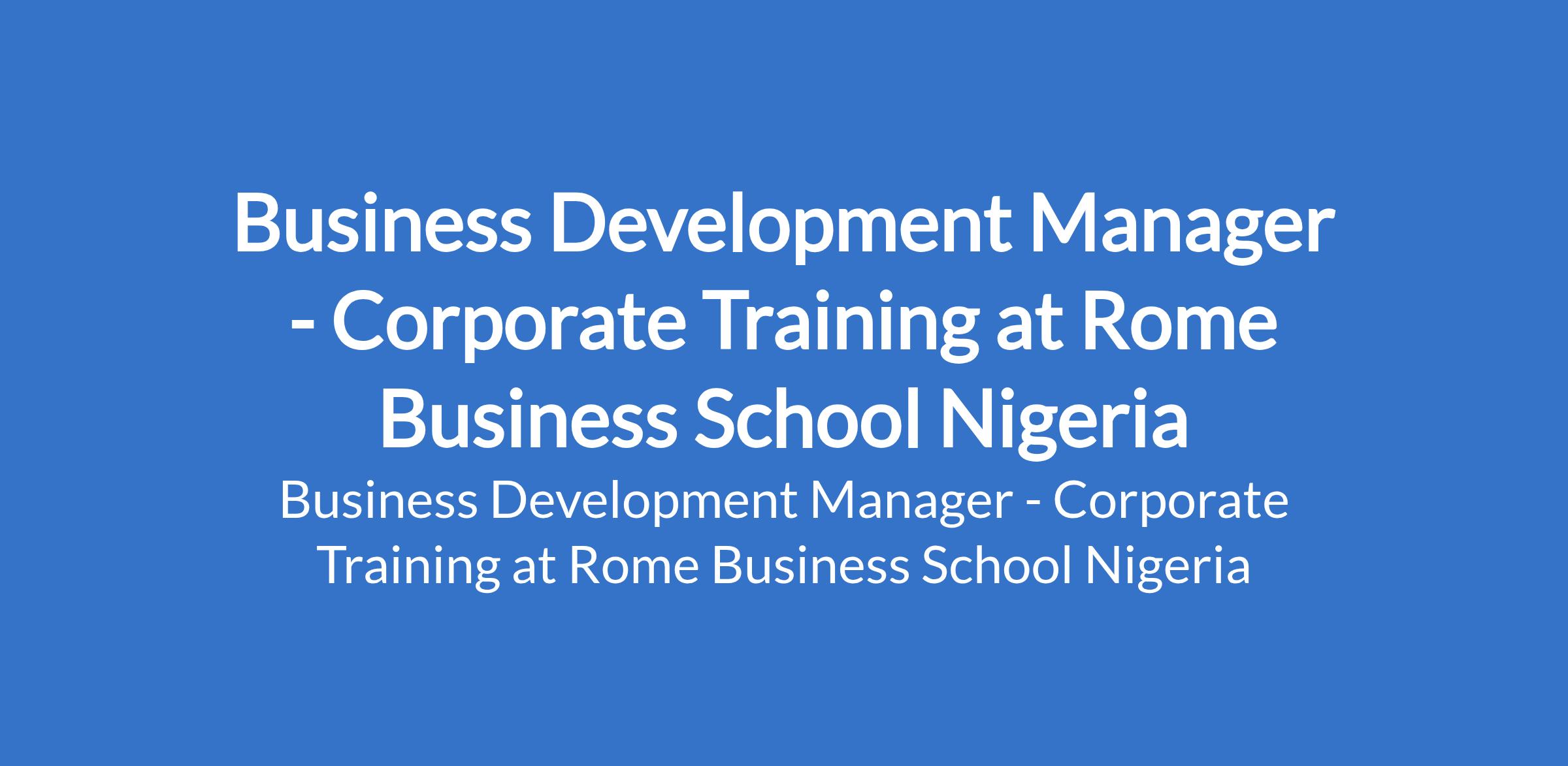 Rome Business School Nigeria is recruiting to fill the position of: Business Development Manager - Corporate Training. The position is located in Ikeja, Lagos State. Interested candidates should possess a Bachelors Degree in Education, Human Resources, Business, Marketing, or related fields (Masters Degree is an advantage), with 5 - 7 years experience in corporate training or executive education.