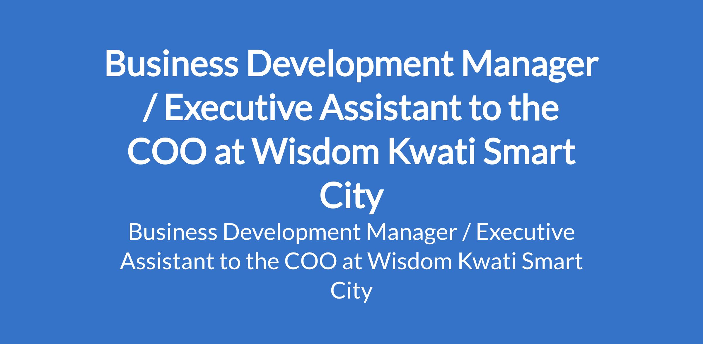 Wisdom Kwati Smart City is recruiting to fill the position of: Business Development Manager / Executive Assistant to the COO. The position is located in Katampe District, Abuja (FCT). Salary: N150,000 - N200 000 per month. Interested candidates should possess a relevant qualification.