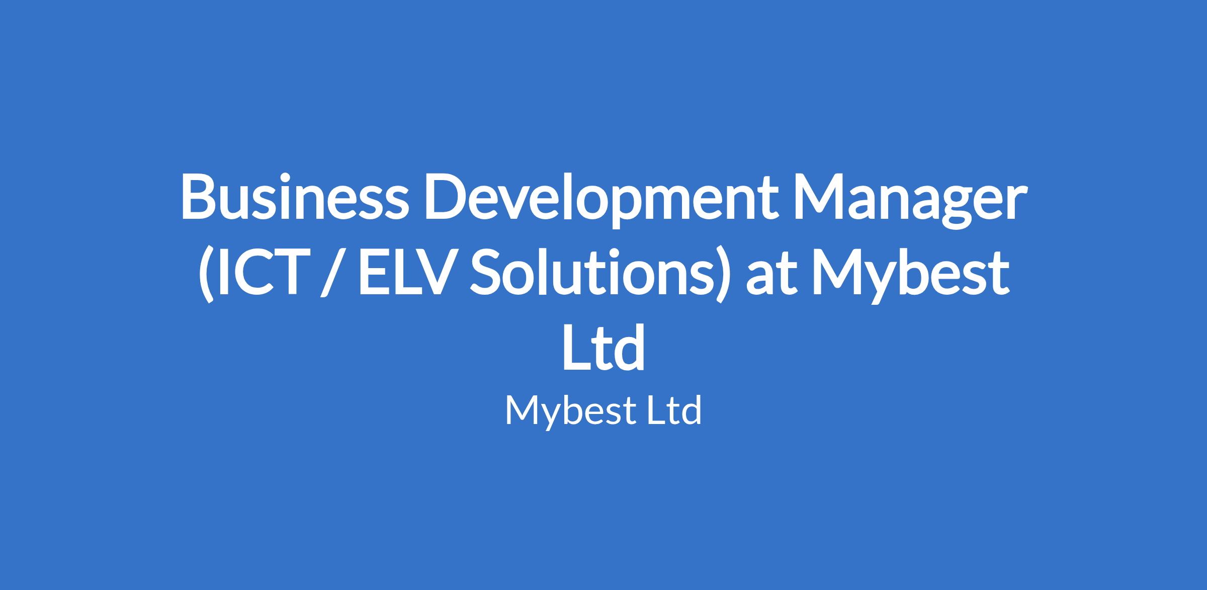 Business Development Manager (ICT / ELV Solutions) at Mybest Ltd