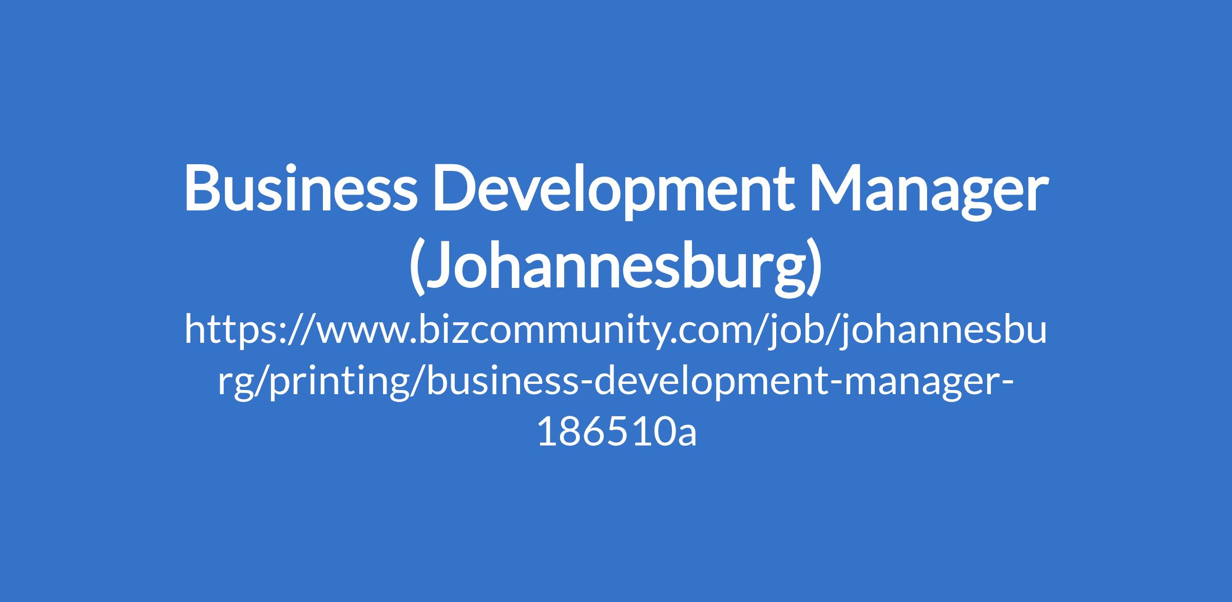 Business Development Manager (Johannesburg)
