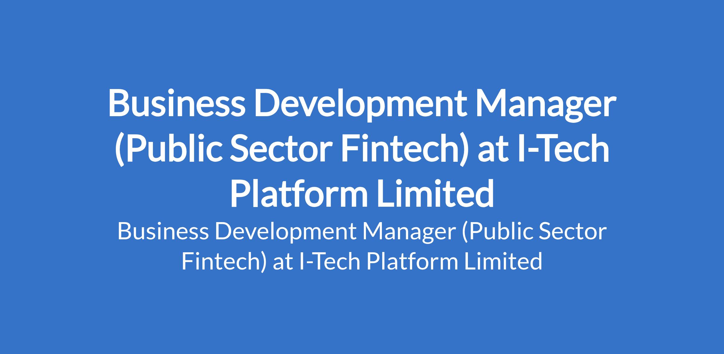 I-Tech Platform Limited is recruiting to fill the position of: Business Development Manager (Public Sector Fintech). The position is located in Abuja (FCT). Interested candidates should possess a Bachelors Degree in Business Administration, Public Administration, Finance, Economics, or a related field with 57 years experience in business development, enterprise sales, or partnerships within fintech, banking, technology, or government consulting.