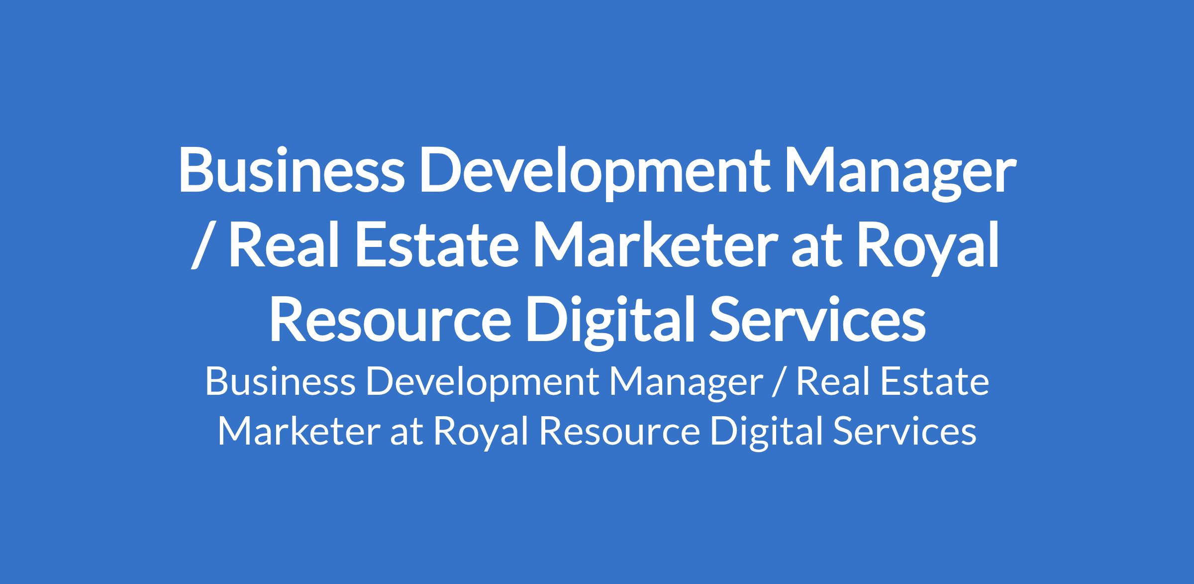 Royal Resource Digital Services is recruiting to fill the position of: Business Development Manager / Real Estate Marketer. The position is located in Lekki, Lagos State. Interested candidates should possess a relevant qualification with 35 years experience in bank marketing, relationship management, or business development.