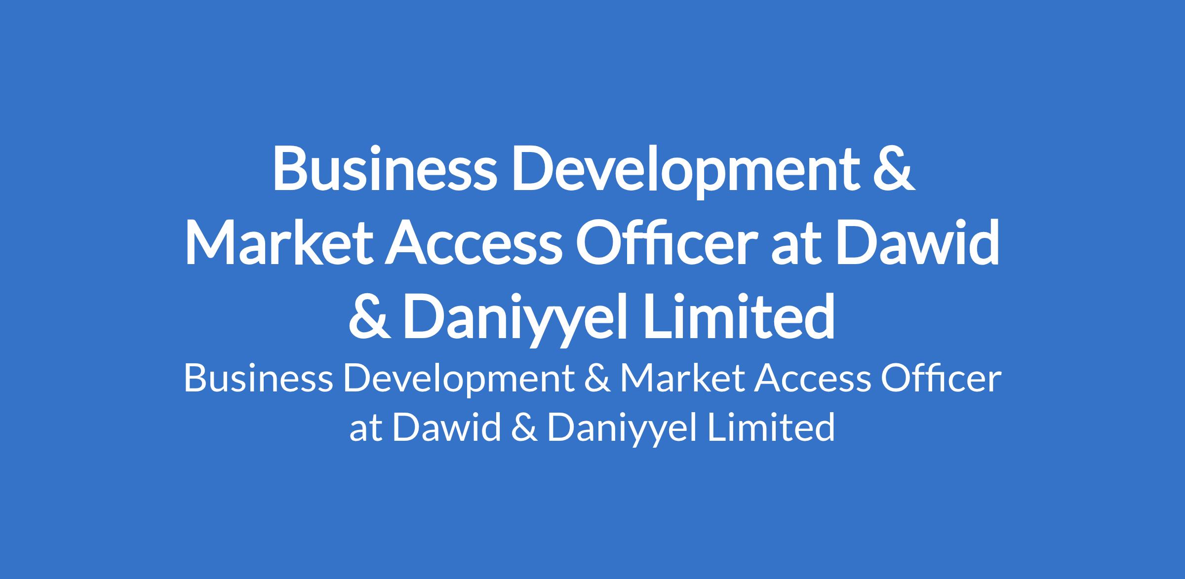 Dawid & Daniyyel Limited is recruiting to fill the position of: Business Development & Market Access Officer. The position is located in Port Harcourt, Rivers State. Salary: N100,000 - N150,000 per month. Interested candidates should possessa Bachelors Degree or HND in Business, Marketing, Management, or a related field with 2 - 3 years experience in business development, sales, partnerships, or client acquisition.