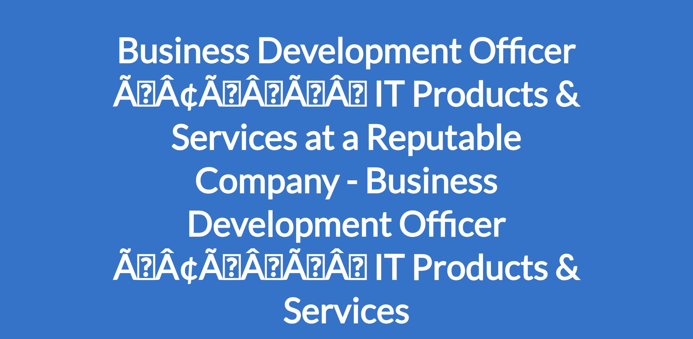 Business Development Officer âÃÂàIT Products & Services at a Reputable Company - Business Development Officer âÃÂàIT Products & Services