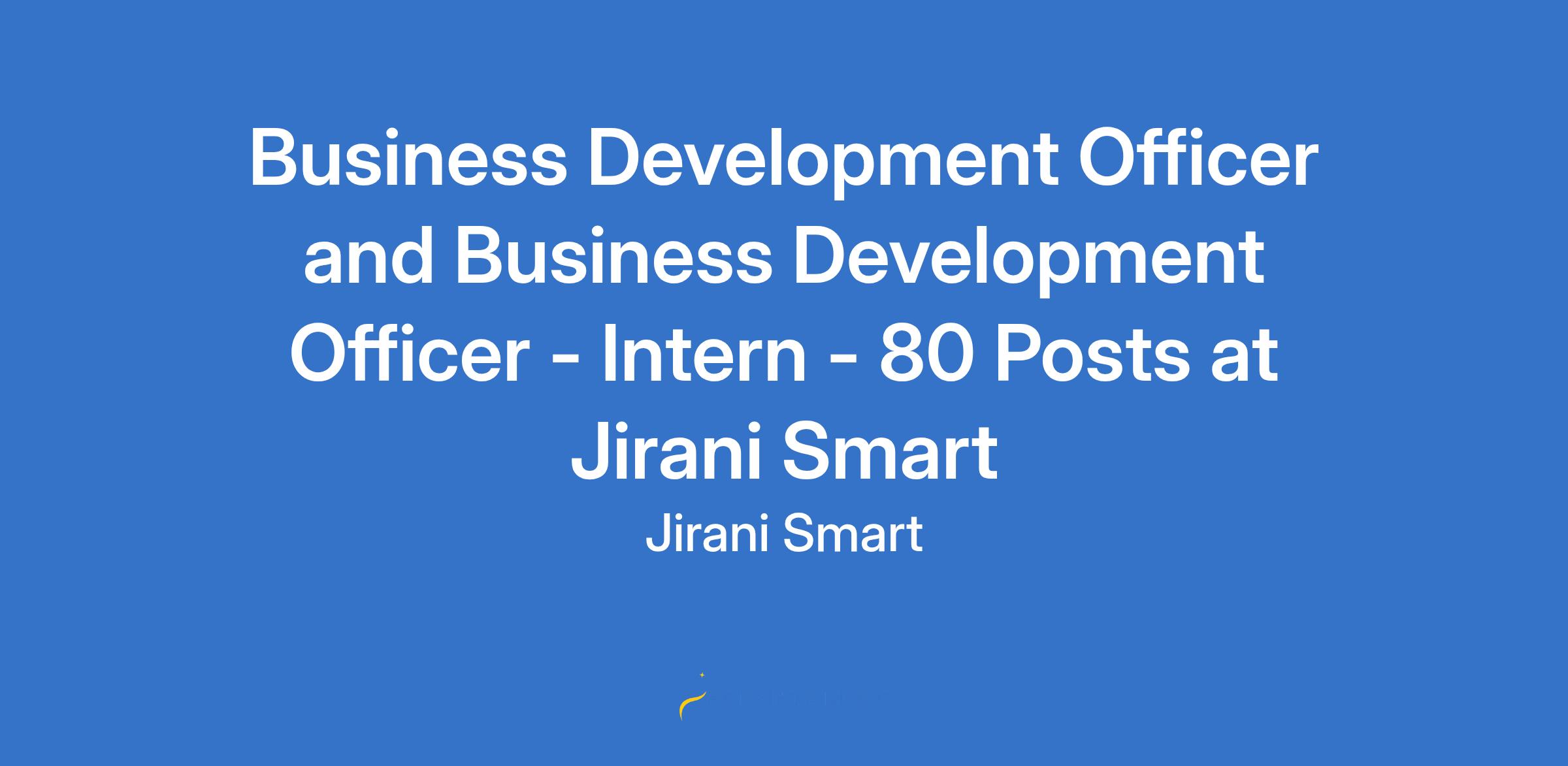 Business Development Officer and Business Development Officer - Intern - 80 Posts at Jirani Smart