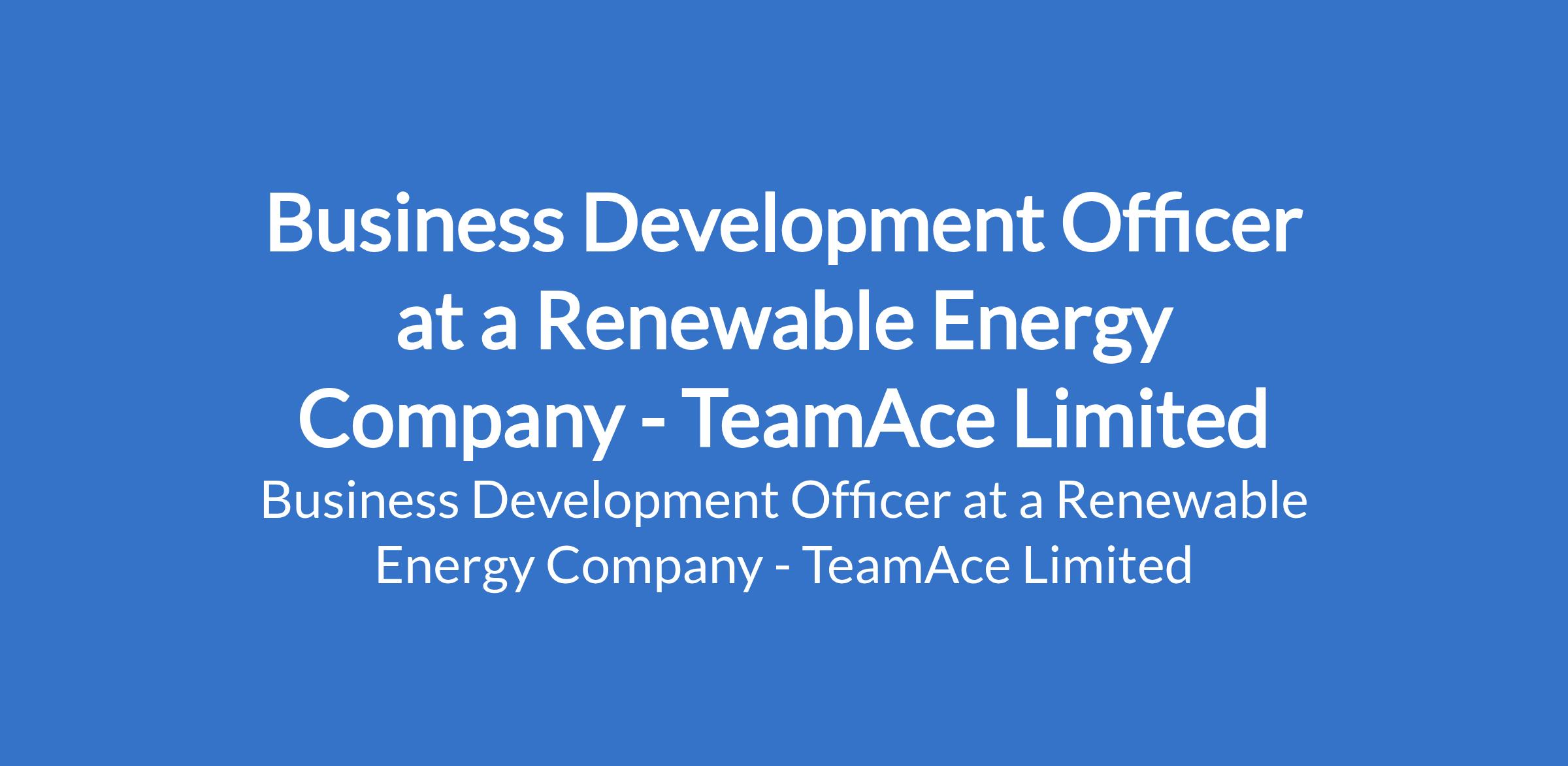 TeamAce Limited - Our client, a reputable organization in the Renewable Energy Sector is recruiting to fill the position of: Business Development Officer (Renewable Energy). The position is located in Lekki, Lagos State. Salary: N280,000 N300,000 monthly. Interested candidates should possess a Bachelors Degree in Business Administration, Marketing, Engineering, or a related field with a minimum of 3 years of business development or sales experience within the renewable energy, power, or engineering sector.
