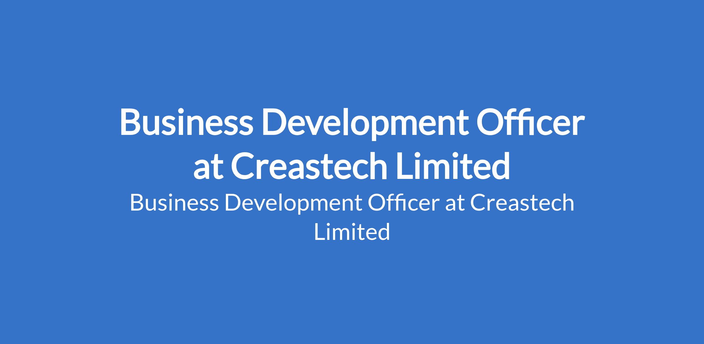 Creastech Limited is recruiting to fill the position of: Business Development Officer. The position is located in Lagos State. Interested candidates should possess a Bachelor's Degree in any discipline with 2+ years of experience in sales, business development, or account management in the IT industry.