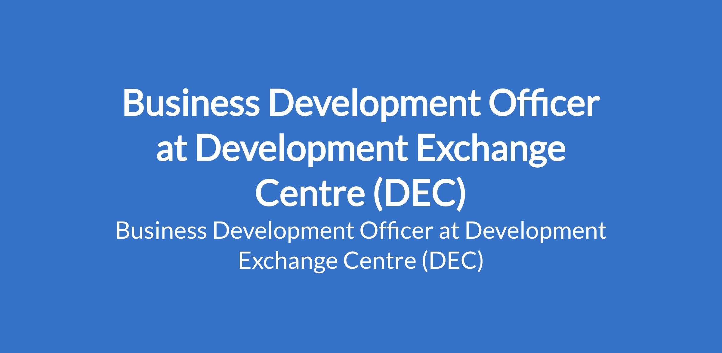 Business Development Officer at Development Exchange Centre (DEC)