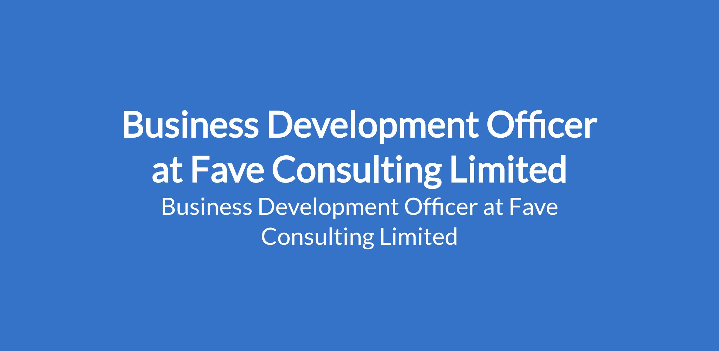 Fave Consulting Limited is recruiting to fill the position of: Business Development Officer. The position is located in Lagos State. Salary: N100,000 - N200,000 / month. Interested candidates should possess an OND / HND / Bachelors Degree in Business Administration or related field with relevant years of work experience.