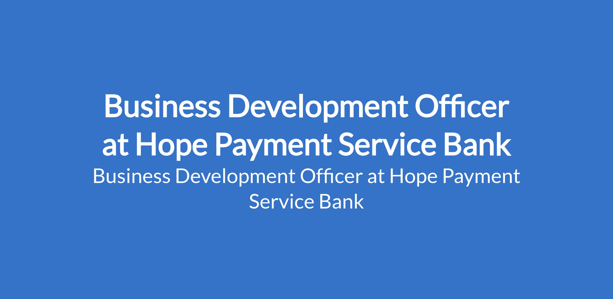 Hope Payment Service Bank is recruiting to fill the position of: Business Development Officer. The position is located in Lagos State. Interested candidates should possess a Minimum of a University Degree in Accountancy, Marketing, Business Administration, or any other relevant discipline with 6 to 8 years post-graduation experience in Banks, Agency, or Micro Finance and Mobile Money sectors.