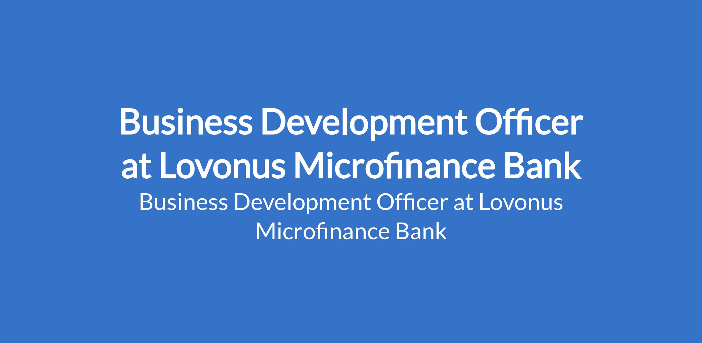 Lovonus Microfinance Bank is recruiting to fill the position of: Business Development Officer. The position is located in Lekki & Sangotedo, Lagos State. Salary: N200,000 - N300,000 / month. In this role, you will be responsible for driving the bank's growth by identifying new business opportunities, mobilizing deposits, marketing loan products, and managing client relationships. Interested candidates should possess a B.Sc. or HND in Marketing, Business Administration, Banking and Finance, or any related field with 24 years of active experience in marketing or business development within a Microfinance Bank or commercial bank.