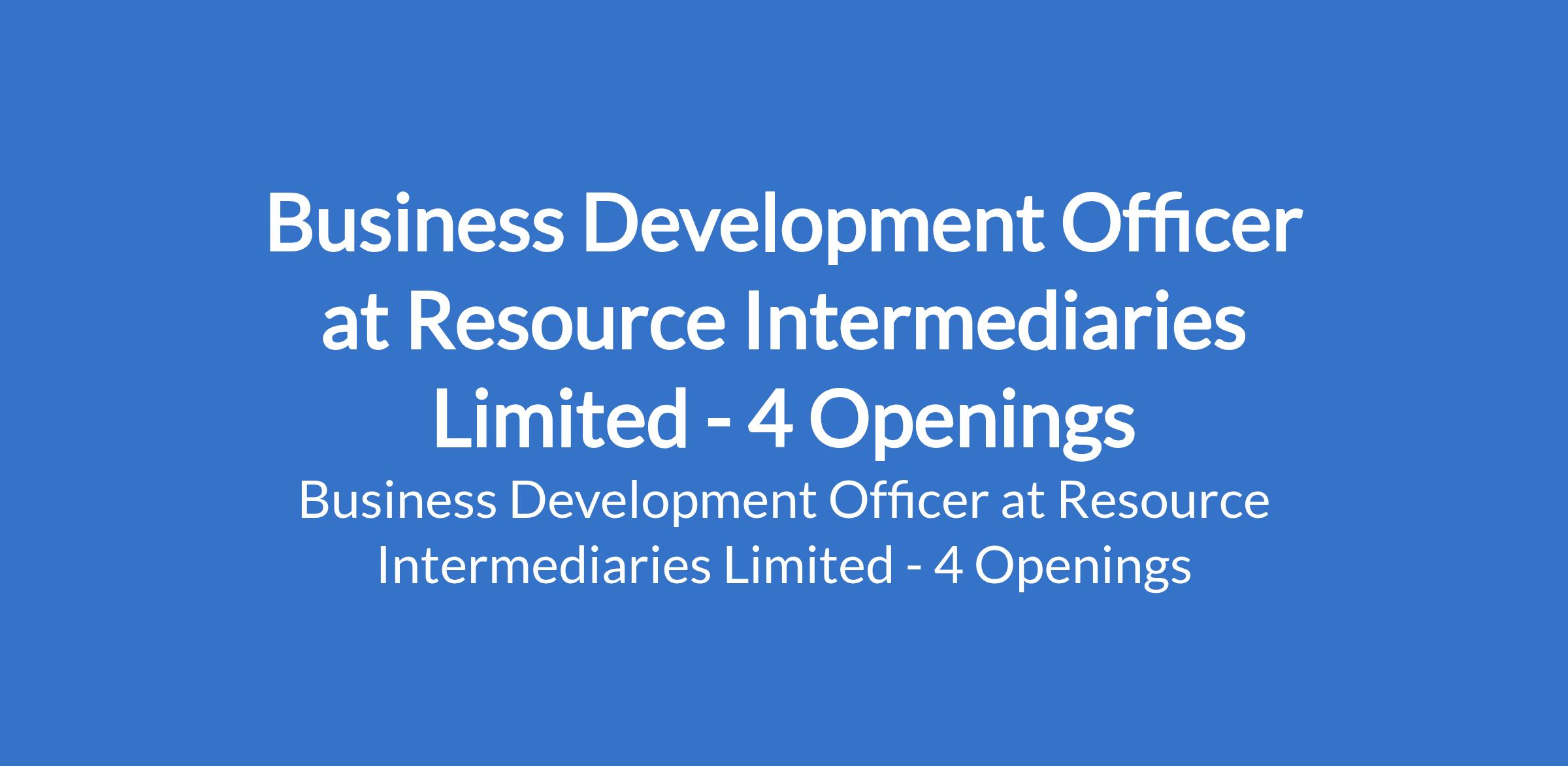 Resource Intermediaries Limited is recruiting to fill the position of: Business Development Officer. The position is located in Abia, Anambra, Ebonyi, and Imo States. Salary: N250,000 per month. Interested candidates should possess a Bachelors Degree in Finance, Business Administration, Marketing, Economics, or a related field with 2 4 years of experience in business development, marketing, or sales within a financial institution.