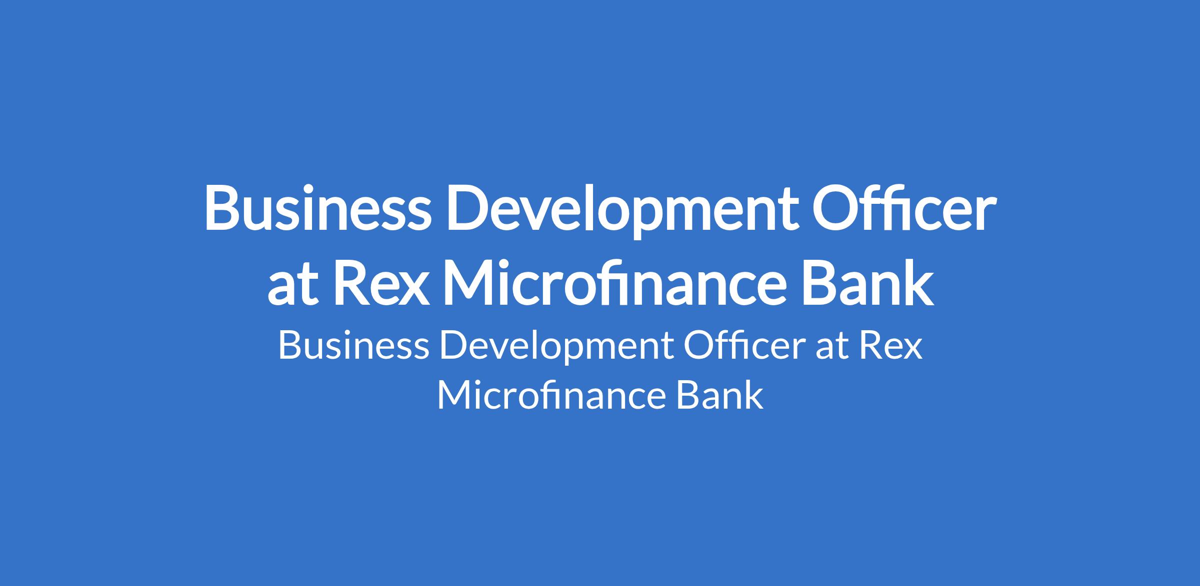 Rex Microfinance Bank is recruiting to fill the position of: Business Development Officer. The position is located in Garki, Abuja (FCT). Interested candidates should possess a Bachelors Degree in Finance, Accounting, Economics, Banking, or related field with 24 years experience in business development, sales or lending within a financial institution.